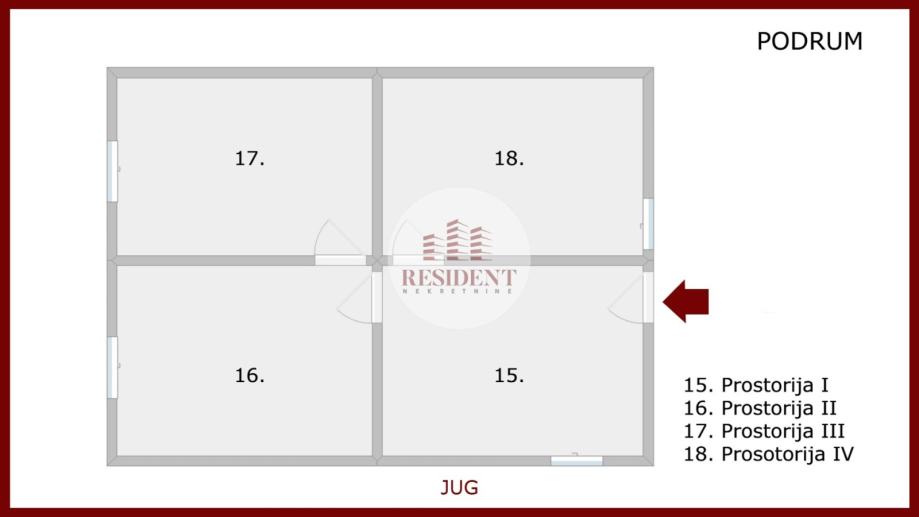 - podruma od 60 m2 u kojem se nalaz 4 prostorije koje mogu poslužiti kao ured/skladište/radiona