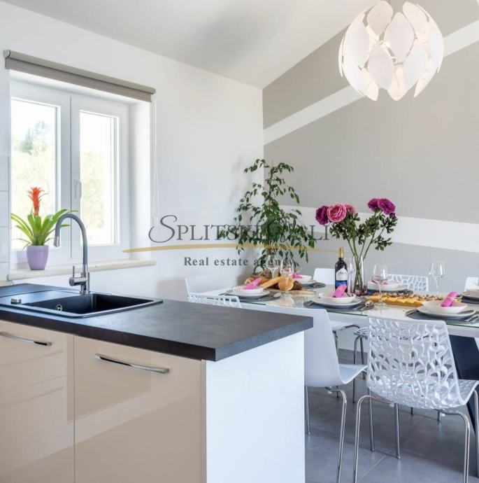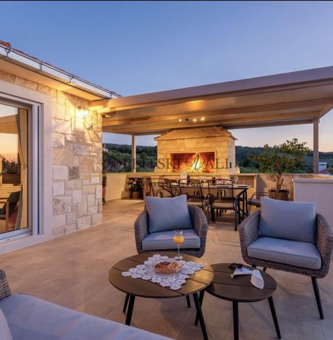 Nekretnina se sastoji od tri spavaće sobe,svaka sa svojom privatnom kupaonicom, dnevnog boravka, terase s vanjskim kaminom idealnim za uživanje u večerima na otvorenom, privatnim infinity bazenom s pogledom na more, teretanom, potpuna privatnost i mir, okruženo zelenilom.