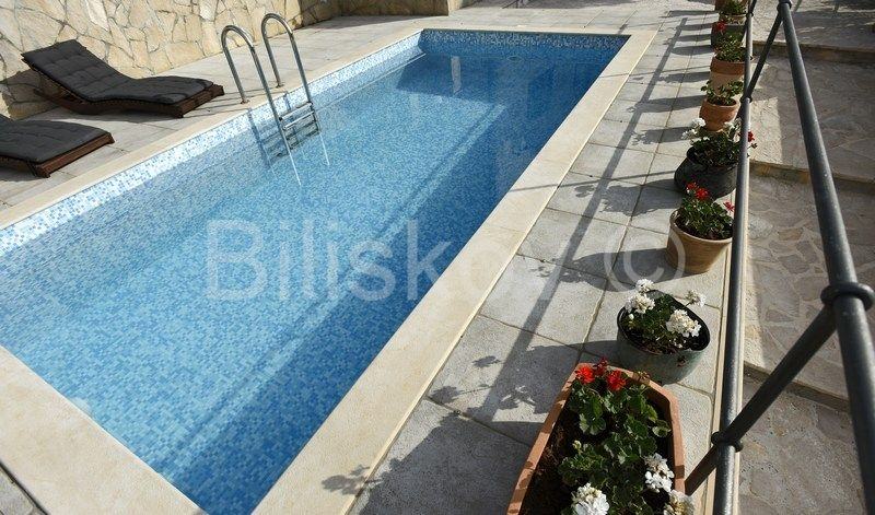 Pomoćni objekt od 34 m2 je u naravi natkrivena terasa sa roštiljem, a u drugom pomoćnom objektu od 7 m2 se nalazi spremište pored bazena.