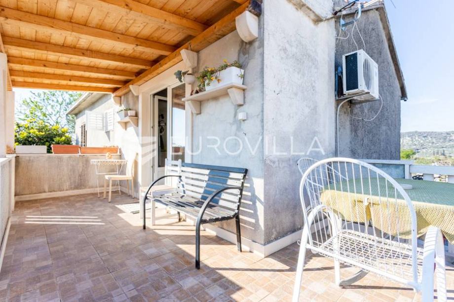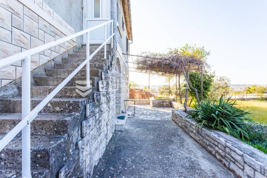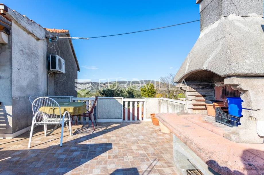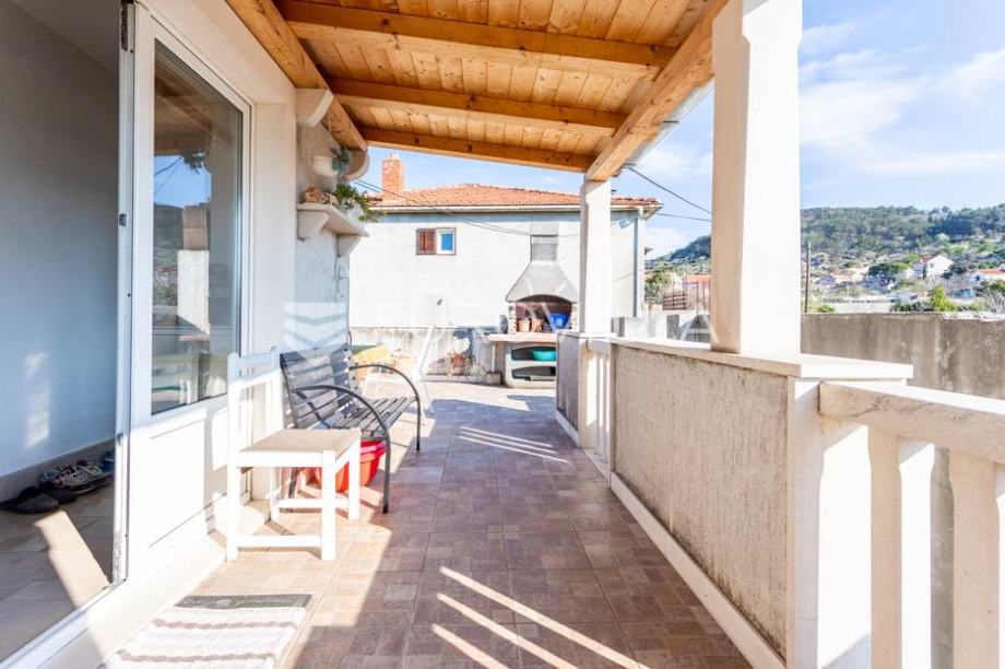 In a quiet location in the heart of the island of Brač, there is a detached house with a total living area of 180 m2 on a plot of land of 475 m2. The house consists of two separate residential units on the ground floor and the first floor, a large terrace of 30 m2, an outdoor kitchen, a garage of...