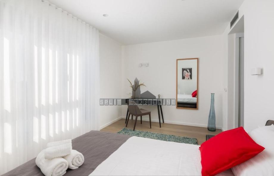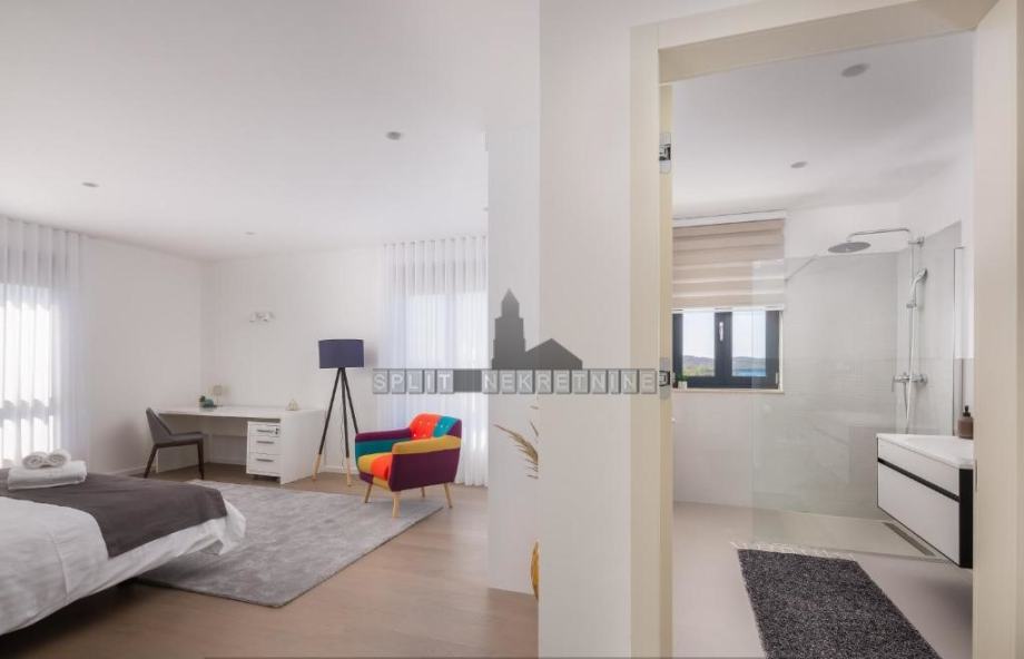 Na katu nalaze se 4 (četiri) spavaće sobe, svaka s vlastitom kupaonicom s wc-om. Jedna soba ima i terasu te garderobu s walk-in ormarom.
