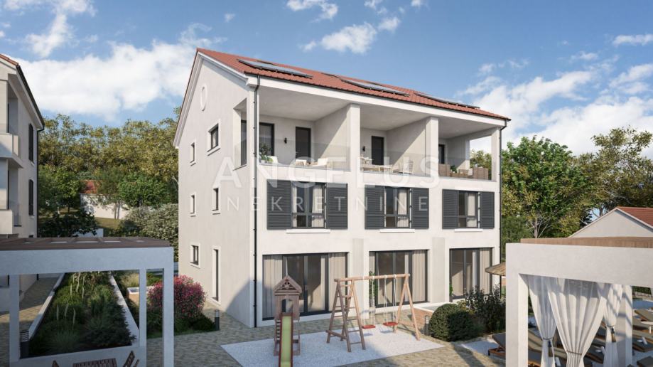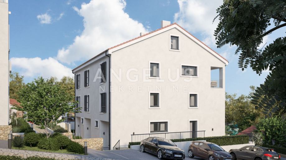 The building that is currently being built has three three-story apartments, each measuring 170 m2, with a total of 4 parking spaces.