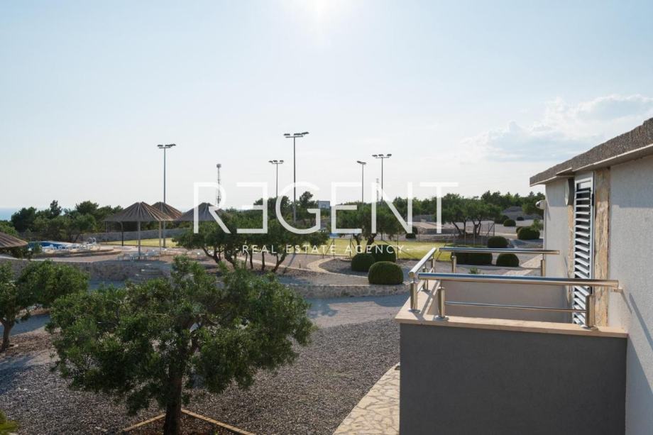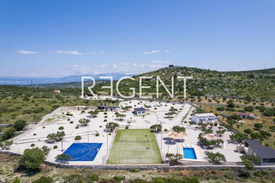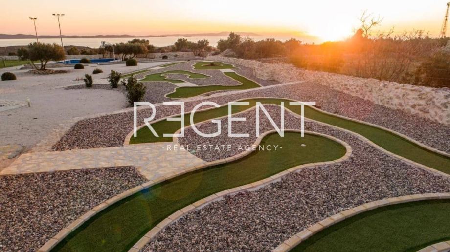 Na prostranom terenu nalazi se sadržaj koji omogućuje rekreaciju i uživanje, vanjski bazen, vanjski tuš, natkriveni jacuzzi, profesionalni teniski teren, košarkaški teren, teren za minigolf, dječje igralište, teren za boćanje, teren za mali nogomet, teretana na otvorenome, a u unutarnjim prostorijama biljarski stol, pikado, stolni nogomet i stolni tenis. Za istraživanje terena otoka kao i za rekreaciju osigurano je pet bicikala, a za gurmanske noći i dane na raspolaganju su dva vanjska kamina, natkrivena terasa, vanjska ljetna kuhinja i vinski podrum.