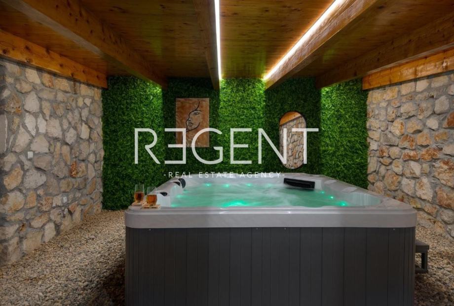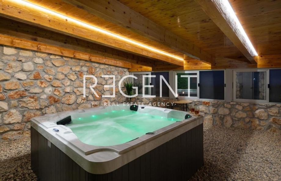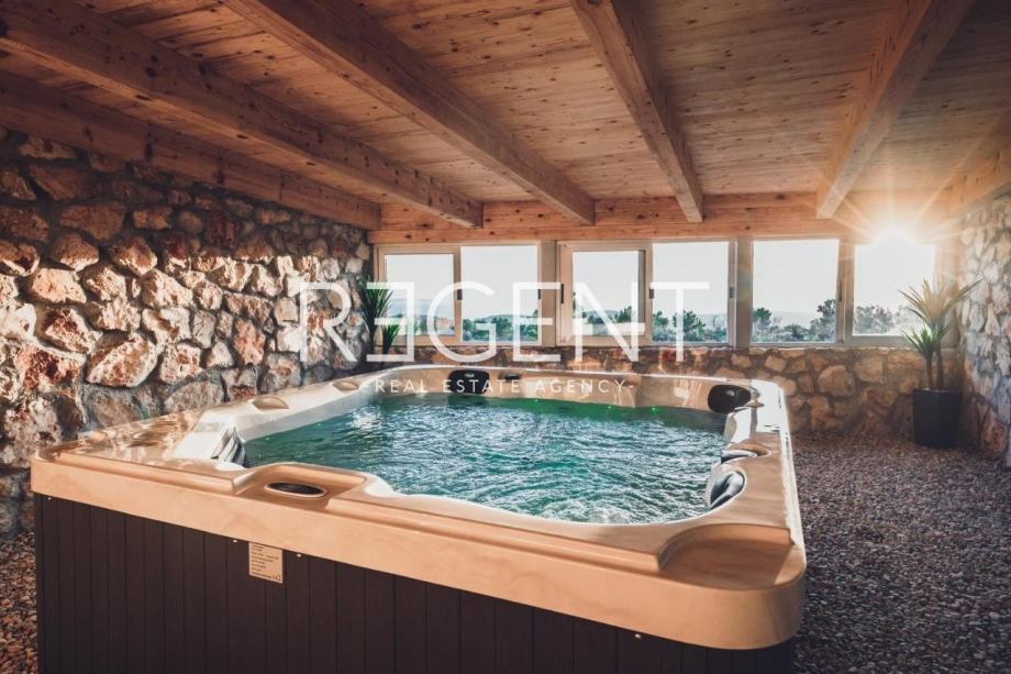 U kući se nalaze pet zvučno izoliranih spavaćih soba, četiri kupaonice koje uključuju hidromasažne kade, wc, dnevni boravak i moderna, potpuno opremljena kuhinja.