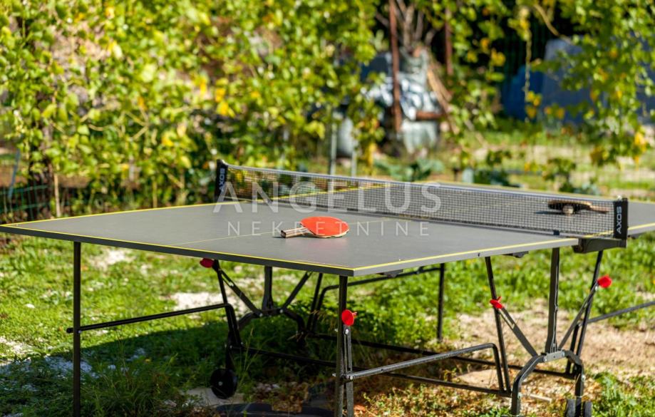 Neposredno uz kuću se nalazi parcela površine 300 m2 – prava privatna oaza. Masline, zelenilo i mir stvaraju ambijent gotovo rustikalne idile, a u središtu vrta smješten je kutak za sjedenje u hladu, idealan za opuštanje ili meditaciju. Na parceli se nalazi i zasebna, potpuno legalizirana građevina površine 21 m², koja pruža izniman potencijal – bilo kao studio za goste, atelje, wellness prostor ili intimna kućica za odmor.