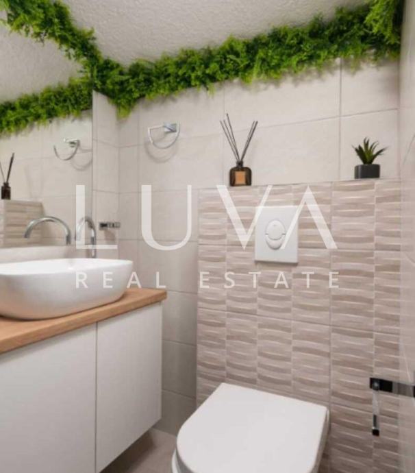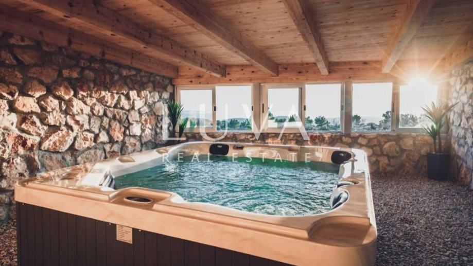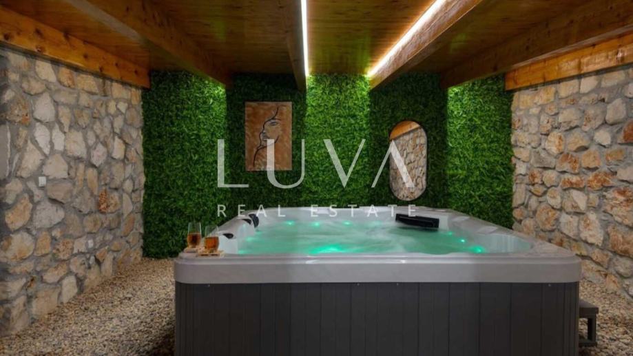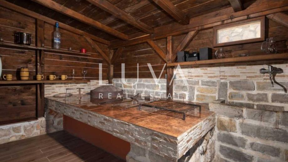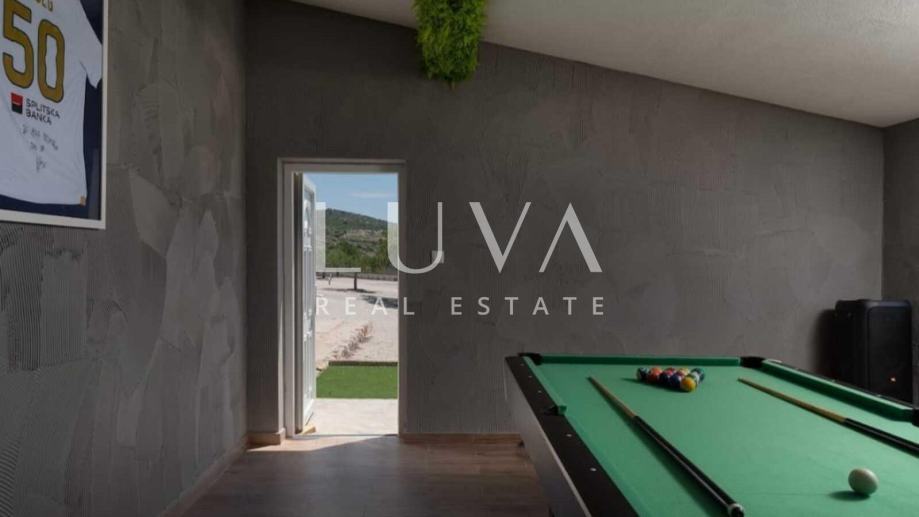 U sklopu okućnice se nalazi bazen sa sunčalištem, roštilj zona,te vanjski bar i kuhinja za ljetna druženja i uživanje u toplim večerima uz čašu izvrsnog vina.