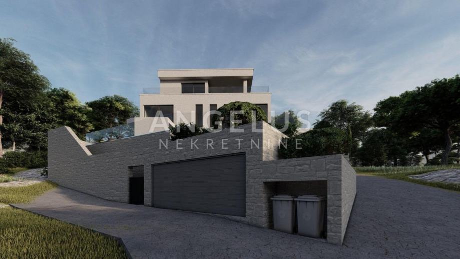 Vila se nalazi na parceli ukupne površine 470 m2 na poziciji sa koje se pruža otvoren pogled na more. Ukupna stambena površina iznosi 320 m2 koji se protežu na etaže podrum, prizemlje, 1. kat i nadgrađe.