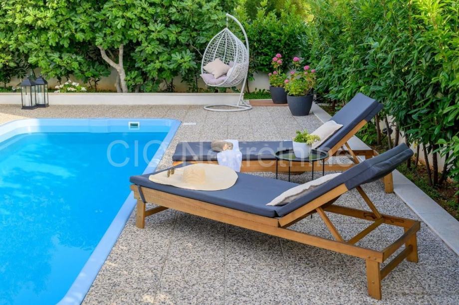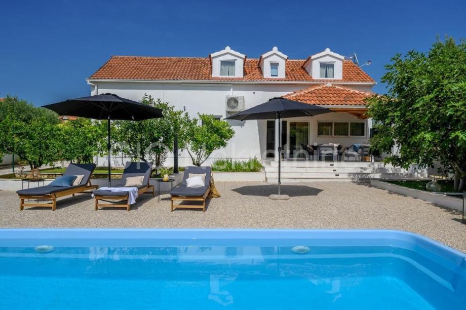 Kuća ima privatno parkiralište, pristup vrtu s privatnim grijanim bazenom, veliku terasu napravljenu za opuštanje, prostor za roštilj koji uključuje zajednički salon.