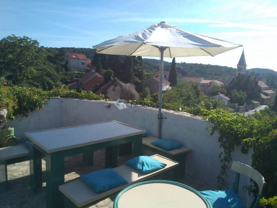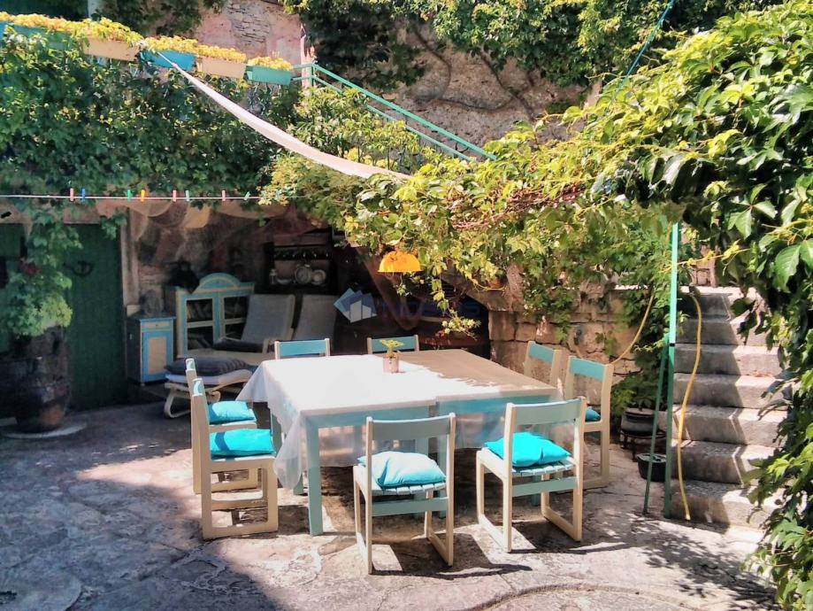 Otok Brač, Nerežišća, kuća sa vidikovcem 500 m2 kuće. Posredujemo u prodaji prekrasne kamene kuće na perifernom istočno djelu Nerežišća na nadmorskoj visini 410 m, iz koje se pruža predivan pogled na cijelu sjeverozapadnu stranu otoka Brača, na more i otoke Šoltu i Drvenik. Počeci izgradnje kuće datiraju unazad 600 godina. Kuća ima 500 m2 + 200 m2 kamenog dvora s kaminom. Posjeduje tri veće i manje terase te vidikovac / kulu sa koje se pruža predivan pogled. Dio kuće je uređen u vintage mediteranskom ugođaju. Kuća je u najmu cijelo ljeto.