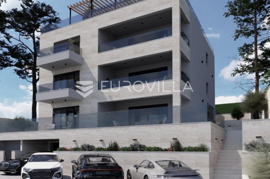 Otok Brač, Postira - projekt luksuzne novogradnje samo par minuta hoda do prekrasne plaže. Moderna privatna stambena zgrada s tri prostrane stambene jedinice povezane liftom iz garaže te prekrasnim pogledom sa svih etaža. Svakom stanu pripada jedno garažno mjesto, jedno vanjsko parkirno mjesto...