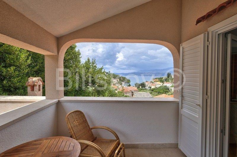 Cijelo imanje je idealno smješteno na uzvisini, odakle se proteže neponovljiv panoramski pogled na mjesto Splitska. Pogled podsjeća na romantične razglednice. Slikovito mjesto Splitska je poznato po jedinstvenim uvalama,a sa ove nekretnine je pogled na centralni dio mjesta i uvalu.