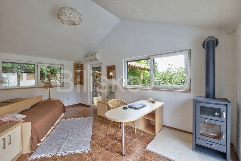 U gostinjskoj kući (cca 30 m2) se nalaze kuhinja, spavaći dio i kupaonica. Iz kuće se izlazi na terasu te ovaj dio zajedno omogućava privatnost i odvojenost od glavne kuće. Ova kuća je također potpuno opremljena i neovisna o glavnoj kući.