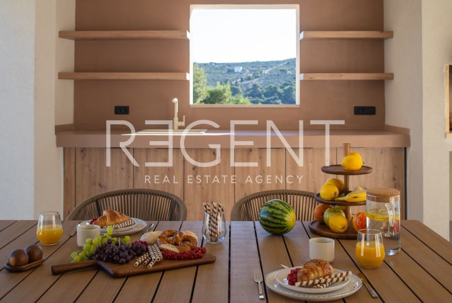 Kuća se nalazi u mjestu Splitska, na mirnoj lokaciji svega oko 160 metara od mora, što omogućuje svakodnevni život uz obalu i brz pristup plažama. Splitska je poznata po opuštenoj atmosferi, čistom moru i autentičnom otočkom ambijentu, zbog čega je privlačna i za stalni boravak i za odmor. U mjestu se nalaze osnovni sadržaji za ugodan život, dok su veća urbana središta lako dostupna, što omogućuje dobar balans privatnosti i povezanosti.Radi se o samostojećoj stambenoj kući raspoređenoj na podrum, prizemlje i kat, smještenoj na parceli površine 435 m². Bruto površina iznosi 193,28 m², dok neto površina s vanjskim terasama iznosi 253,18 m². Na katu su tri spavaće sobe, svaka s vlastitom kupaonicom, što osigurava visoku razinu funkcionalnosti i komfora. Prizemlje uključuje kuhinju, ostavu, spremište, WC, blagovaonicu i dnevni boravak s izlazom na natkrivenu vanjsku terasu s ljetnom kuhinjom i blagovaonicom, zamišljenu kao produžetak dnevnog prostora za boravak na otvorenom. U podrumu se nalaze garaža te dodatni spremišni odnosno radni prostor.Zahvaljujući rasporedu i blizini mora, kuća je prikladna za obiteljski život, ali i kao investicija u turistički najam. Splitska je stabilna i tražena lokacija na otoku, s kontinuiranim interesom kupaca i gostiju, što ovoj nekretnini daje dugoročan potencijal očuvanja vrijednosti i ostvarivanja prihoda. Spoj mirne mikrolokacije, funkcionalnog rasporeda i vanjskog prostora čini je pogodnom za različite načine korištenja — od privatnog odmora do komercijalnog najma. Za dodatne informacije i dogovor razgledavanja, slobodno nas kontaktirajte!Za više informacija, kontaktirajte našeg agenta na brojeve telefona: