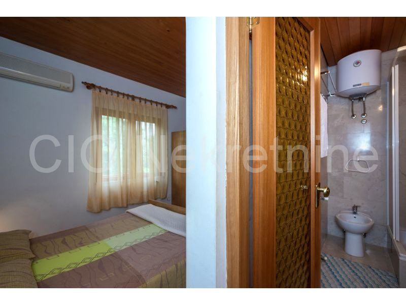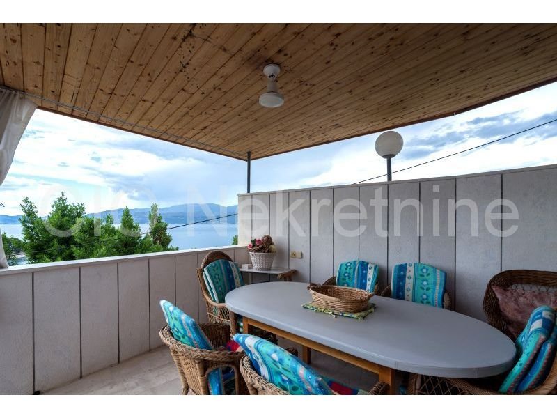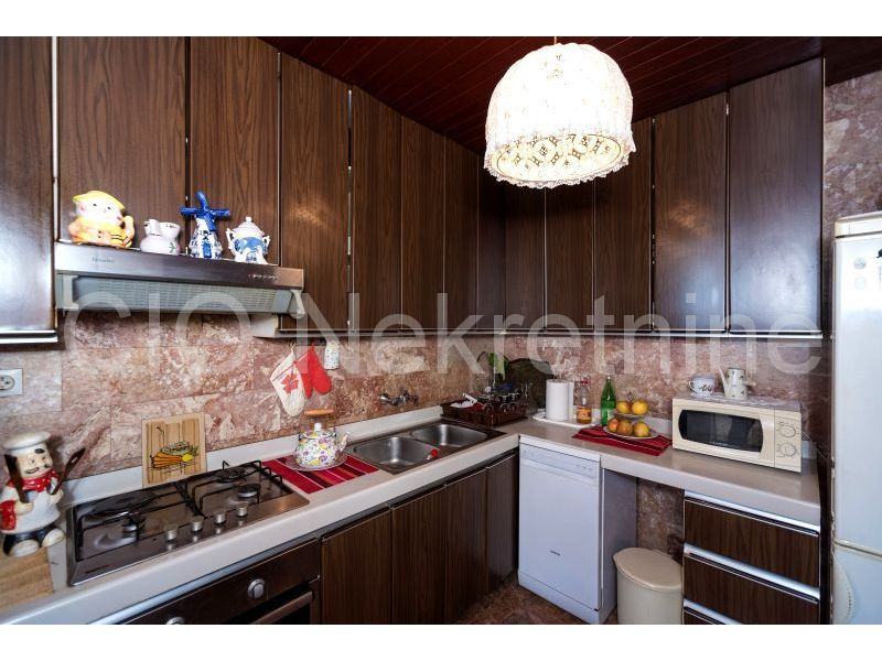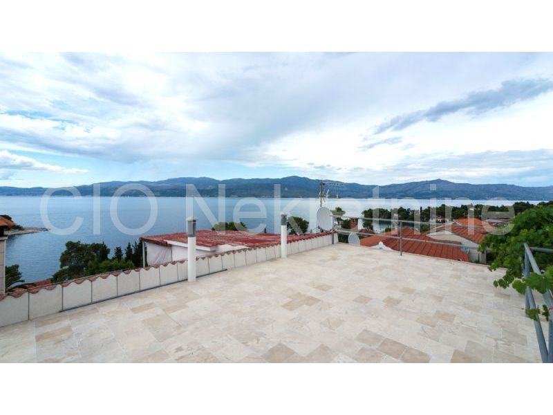 Na prvom katu se nalazi dvoetažan stan 150 m2, koji se sastoji od kuhinje, dnevnog boravka, četiri spavaće sobe, tri kupaonice i WC-a, tri balkona i velike terase na vrhu kuće sa koje se pruža čaroban pogled na kompletan okoliš.