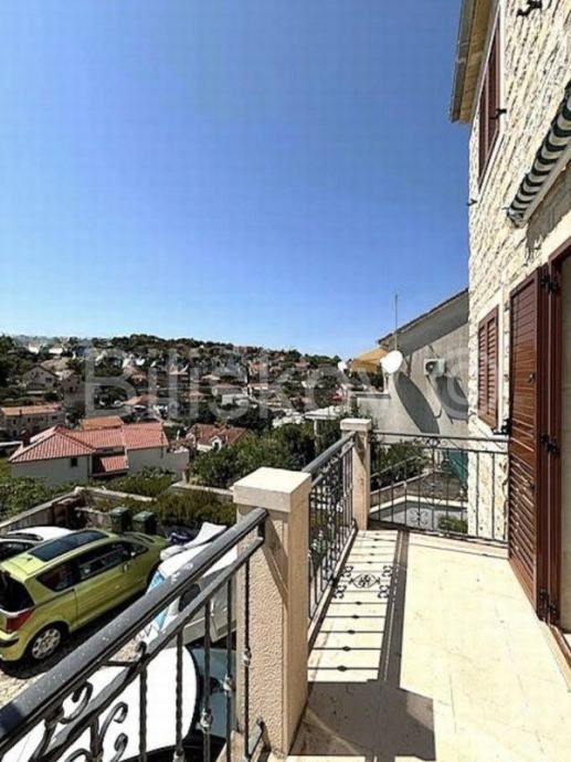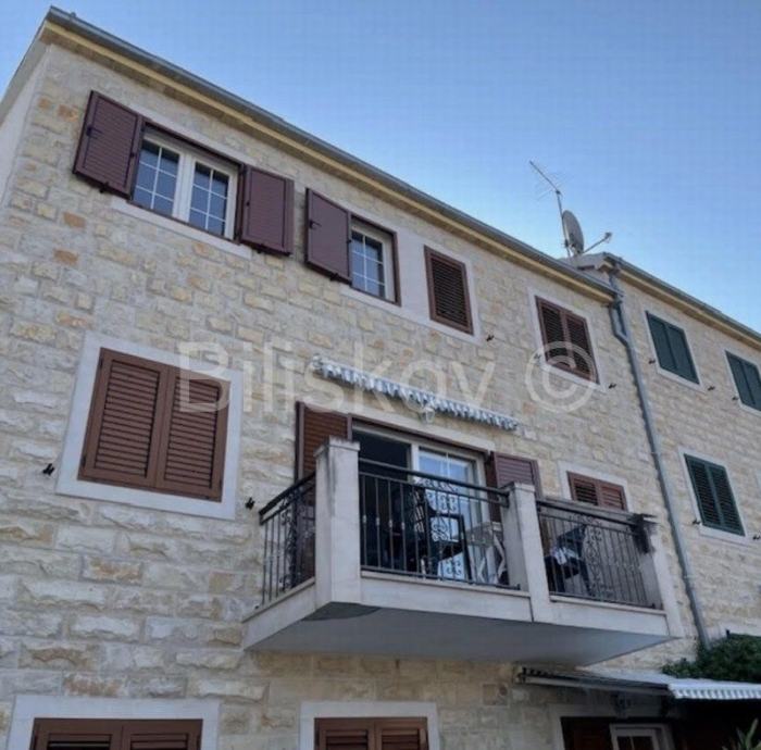 Brač, Splitska trosoban stan 91 m2 s vanjskim parkirnim mjestom 12 m2, 100 m od mora, s pogledom na more na 1. katu manje stambene zgrade.