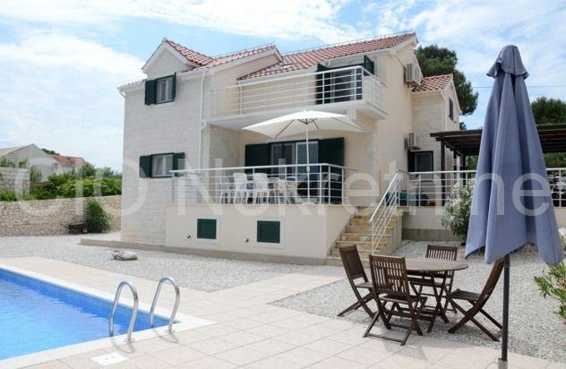 U prvom redu do obale, u mirnom i slikovitom mjestu koje odiše šarmom i spokojem, smještena je ova elegantna vila s bazenom, savršena za potpuni odmor i bijeg od svakodnevice. Okružena tišinom i mediteranskim ugođajem, pruža idealne uvjete za opuštanje i uživanje u svim blagodatima života uz more.