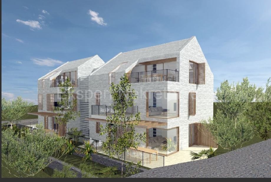 Građevinsko zemljište čine 2 katastarske čestice koje zajedno formiraju jedan pravilan oblik. Sukladno prostornim uvjetima izrađen je idejni projekt kuće kakva bi se mogla izgraditi, koji ostavlja potencijalnim kupcima stvarnu sliku potencijala. Zemljište je udaljeno nešto manje od 600 m od plaža, mora i centra.