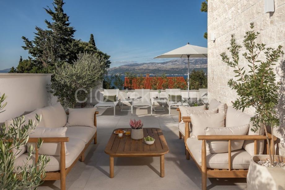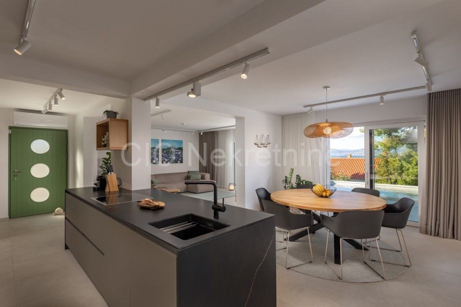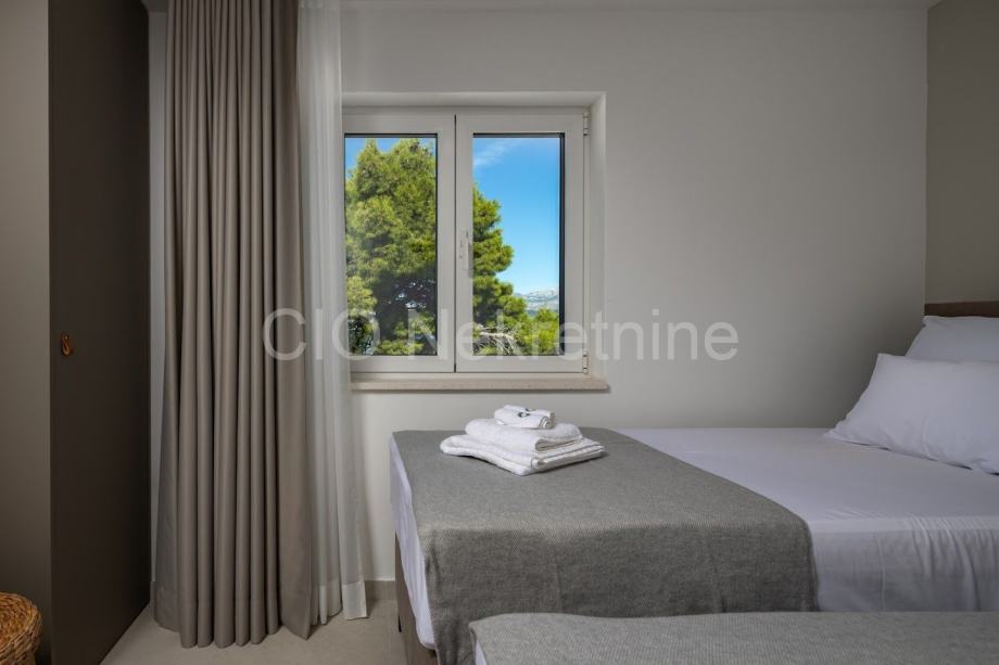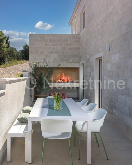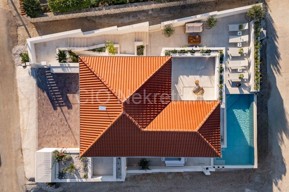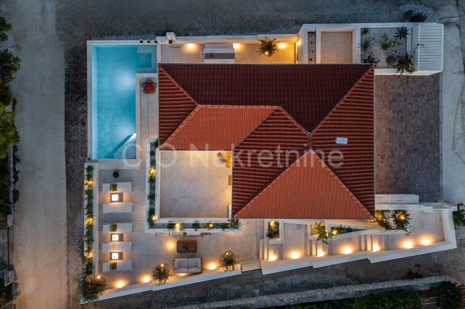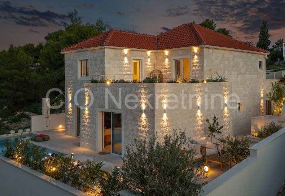 Izgrađena u tradicionalnom dalmatinskom stilu, s mnogo kamena i u harmoniji s okolnim borovim šumama, ova vila predstavlja savršen spoj luksuza i mediteranskog šarma.
