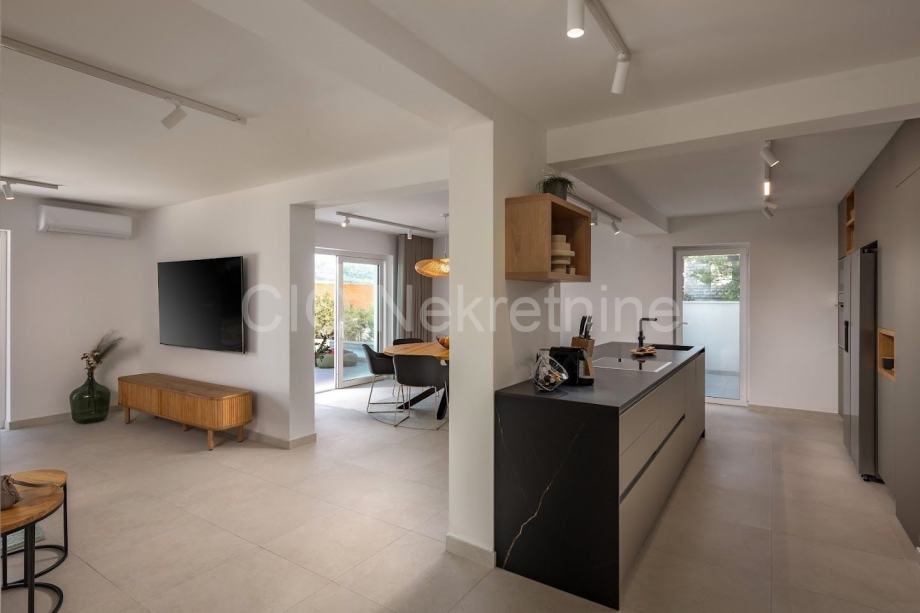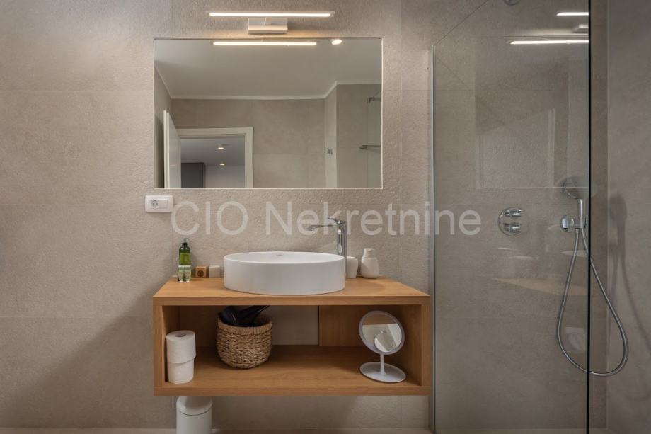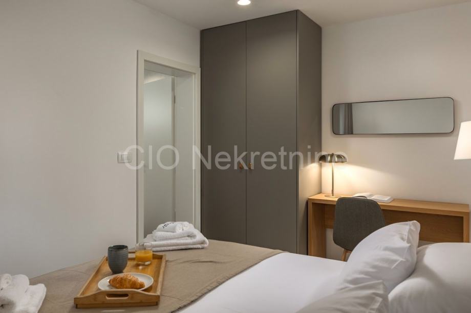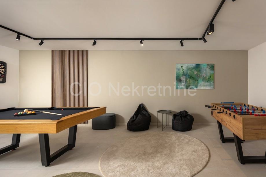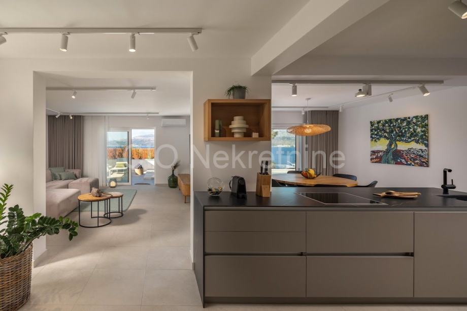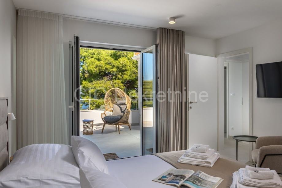 Izgrađena u tradicionalnom dalmatinskom stilu, s mnogo kamena i u harmoniji s okolnim borovim šumama, ova vila predstavlja savršen spoj luksuza i mediteranskog šarma.