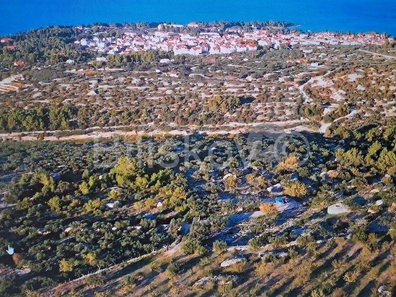 Brač, Supetar, maslinik površine 14.050 m2 sa prekrasnim otvorenim pogledom na more i Split. Udaljenost od mora cca 1000 m.