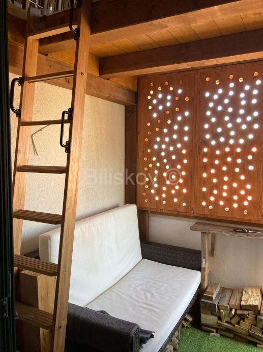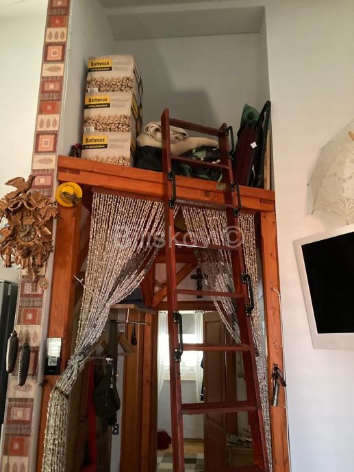 Brač, Supetar, jednosoban stan površine 34,4 m2 s lođom površine 6,58m2, parkirnim mjestom površine 12,5m2 te dodatnim prostorom u potkrovlju koje nije uračunato u stambenu površinu.