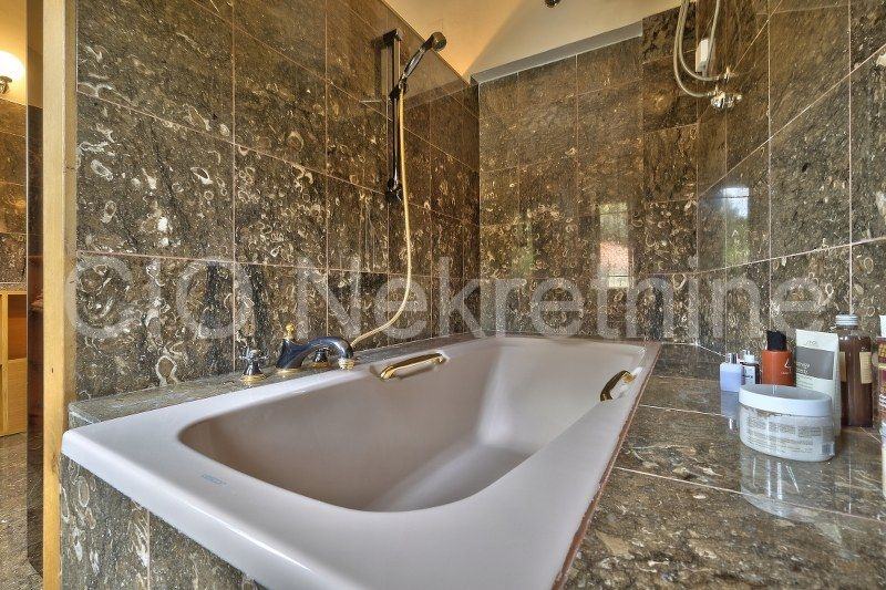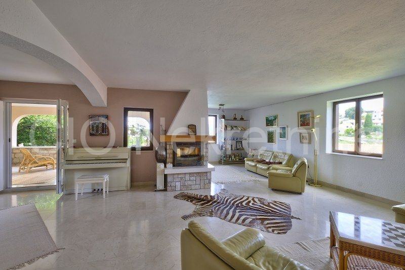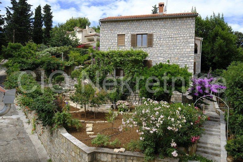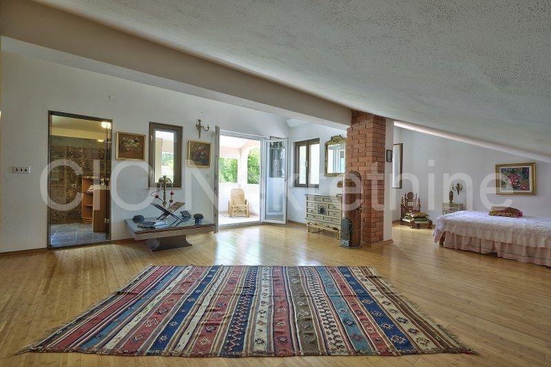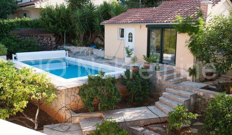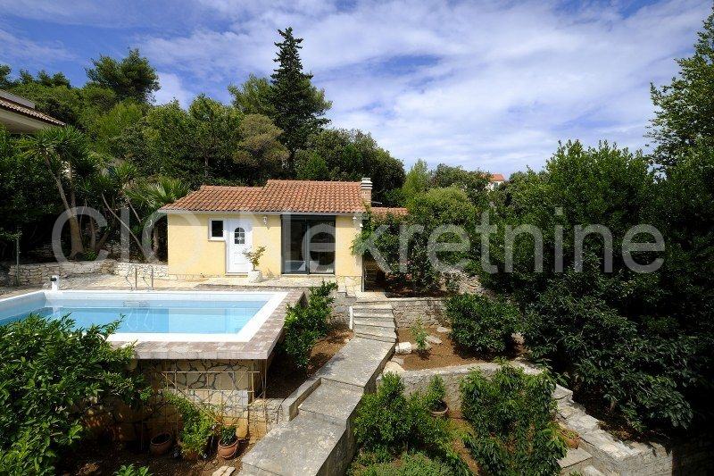 Posredujemo u prodaji prekrasne dvije dalamatinske vile zajedno s bazenom smještenih na parceli/ vrtu površine 1000 m2 na otoku Braču, u blizini grada Splita. Vile su modernog dizajna interijera s širokom primjenom prirodnih i rafiniranih materijala, poput mramora, slijedeći izvorni karakter otoka Brača. Glavna vila ima dnevnu površinu od 250 m2, a u prizemlju je predvorje i velika terasa s prekrasnim pogledom na more. Na terasi je kamin i veliki stakleni stol. Unutra je kuhinja i prostrani dnevni boravak koji posjetitelje također ostavlja bez daha, s pogledom na more i svestranim dekorom. Popločanim mramornim stepenicama spuštamo se u prizemlje gdje se nalaze dvije spavaće sobe, dvije prostrane kupaonice i jedna soba koja se koristi i kao radna i spavaća soba. U prizemlju su također dva skladišna prostora. Iz dnevne sobe, mramorne stepenice s popločanim podovima vode do velike spavaće sobe, prostrane kupaonice i balkona s pogledom na more. Na balkonu se nalazi i mini kuhinja. Vile su okružene mediteranskim biljem, voćem, povrćem, terasama, vanjskim roštiljem i sl. Na parceli se nalazi i druga mala vila veličine 30 m2 koja se sastoji od kuhinje, kupaonice i dnevnog boravka, što znači da je u stvari studio apartman. Studio je opremljen s peći na drva i klima uređajem te visokokvalitetnim namještajem. Vila je luksuzno uređena i u potpunosti je pod video nadzorom. Ispred male vile nalazi se i bazen. Ima tri vanjska parkirna mjesta, jedno u garaži, sigurnosne kamere i alarmni sustav. Kuća se prodaje djelomično namještena. Izvrsna lokacija u tihom dijelu grada, samo 100 metara od centra i nekoliko minuta hoda od uvale i plaže.