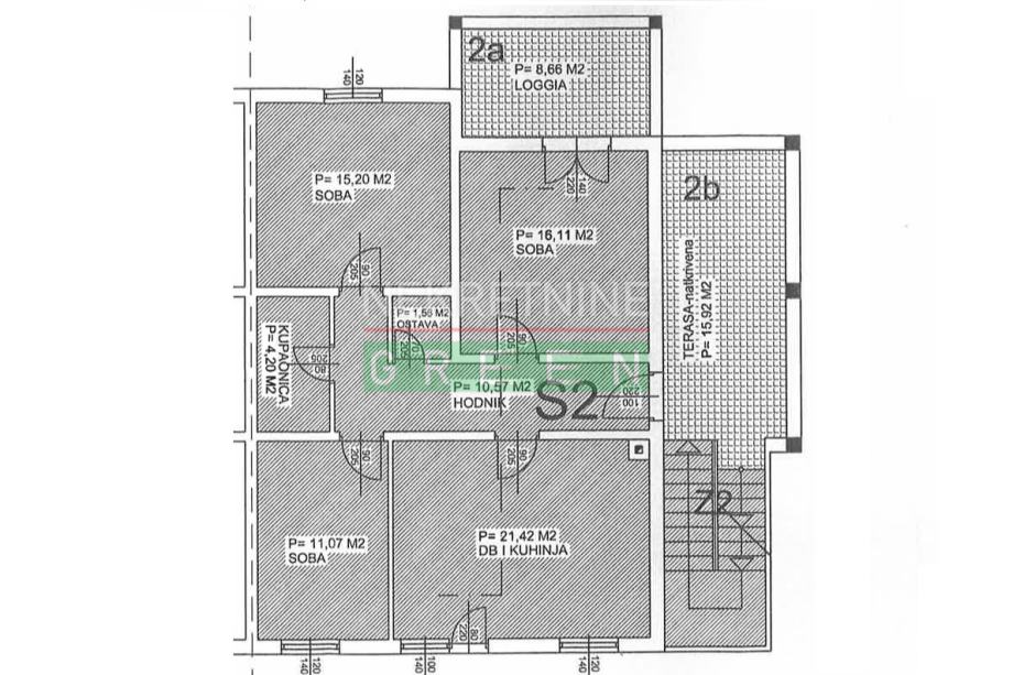 - loggia površine 8,66 m2, natkrivena terasa površine 15,52 m2,