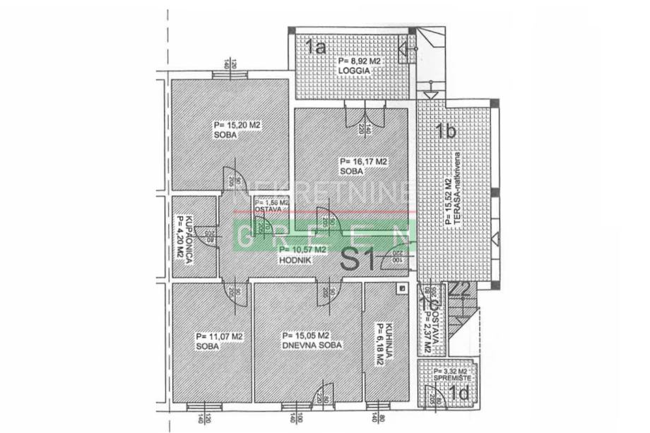 - loggia površine 8,92 m2, natkrivena terasa površine 15,52 m2,