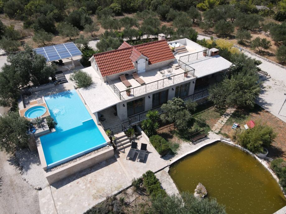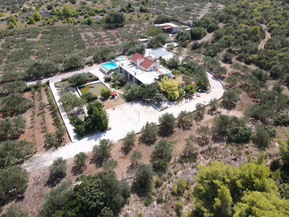 - Površina zemljišta: Kuća se nalazi na prostranom zemljištu od 11.430 m². Na tom zemljištu možete uživati u raznolikom mediteranskom raslinju, dječjem igralištu, malom jezeru, bazenu, šetnjicama i šumici.