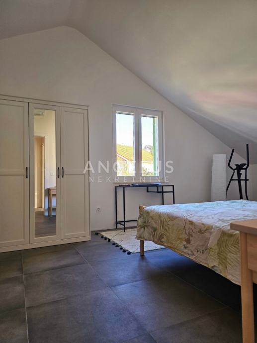 U prizemlju glavne kuće se nalazi kuhinja, blagovaonica i dnevni boravak sa izlaskom na veliku natkrivenu terasu, 1 spavaća soba sa svojom kupaonicom te ostavom. Unutarnjim stepenicama se penje na kat gdje su smještene 2 spavaće sobe, svaka sa svojom kupaonicom.
