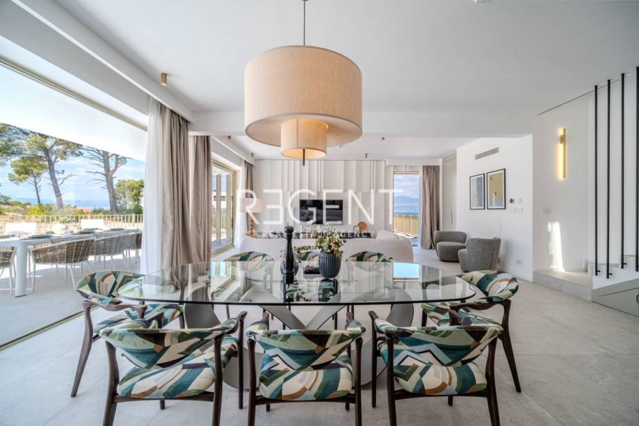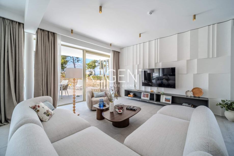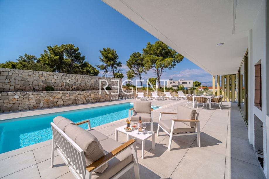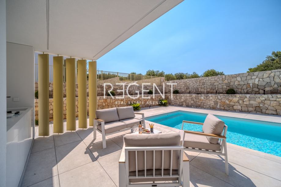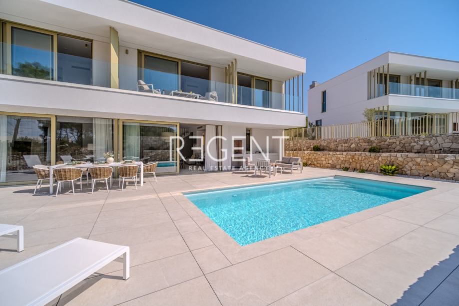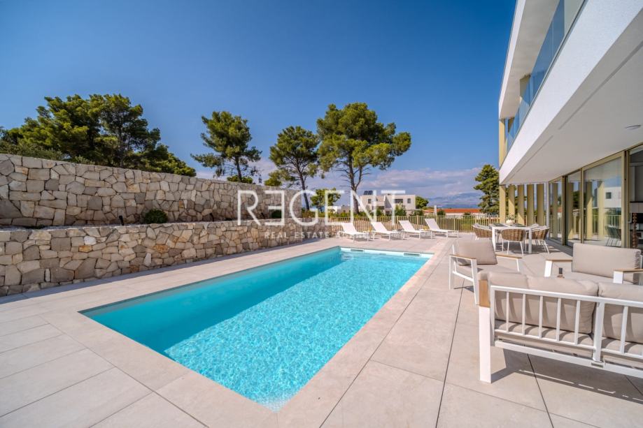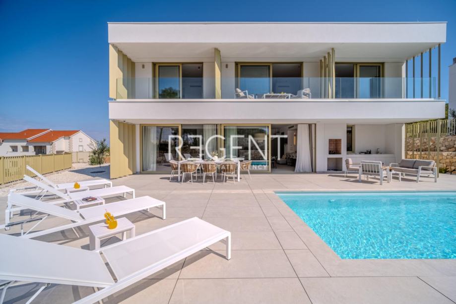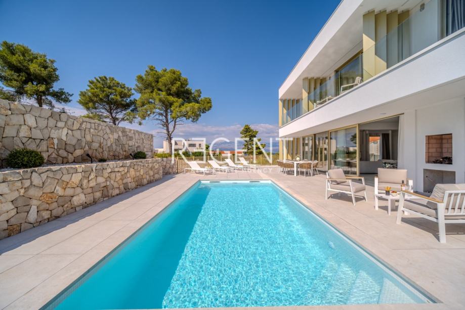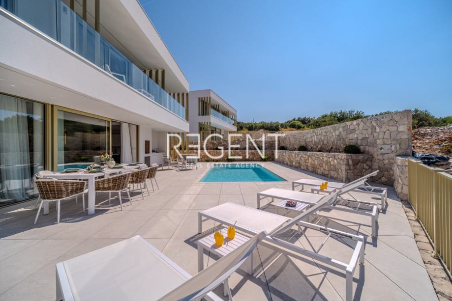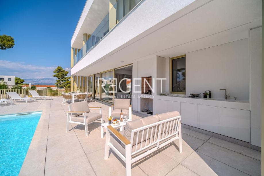Sastoji se od prizemlja, prvog kata te outdoor space-a. Prizemlje vile čini otvoreni prostor koji objedinjuje dnevni boravak, blagovaonicu i modernu kuhinju opremljenu najnovijom tehnologijom. Velike staklene površine osiguravaju obilje prirodnog svjetla, a izravan pristup terasi od 100 m² s privatnim bazenom i roštiljom čini ju idealnim mjestom za opuštanje.