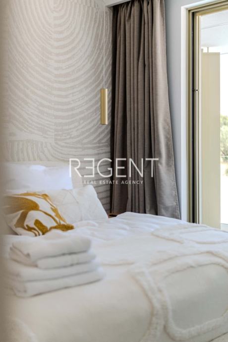 Dodatne značajke uključuju pripremu za punjač električnih vozila, kamin, električne rolete i vanjsko osvjetljenje. Kupaonice su opremljene električnim podnim grijanjem za dodatni komfor. Kvalitetne keramičke pločice od Imola i bazenski mozaik od Appiania pravi su pokazatelj pažnje koja je posvećena detaljima u svakom kutku ove kuće.