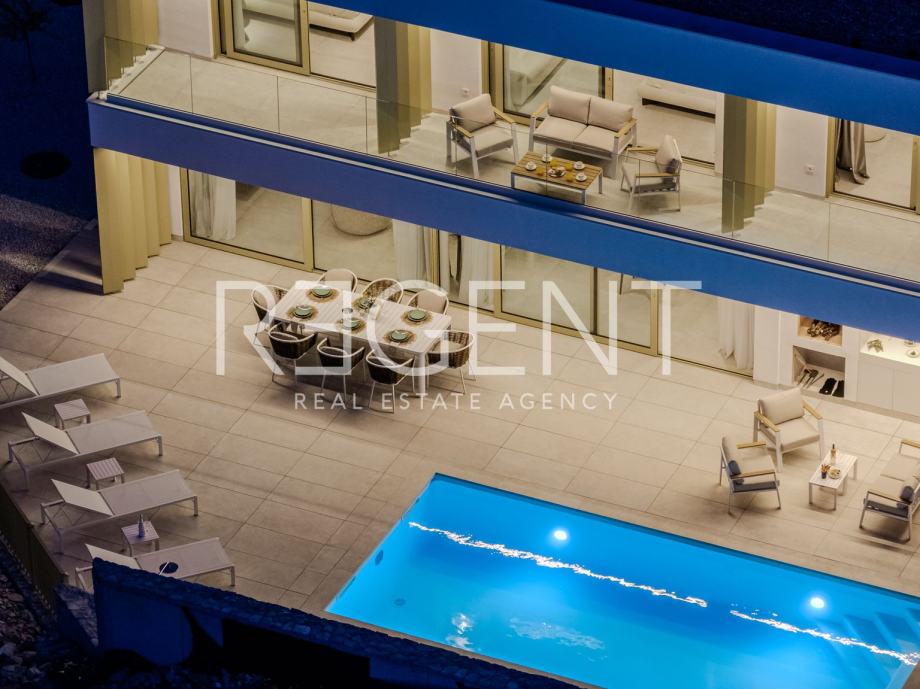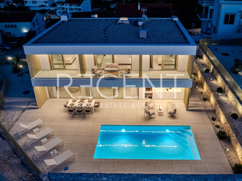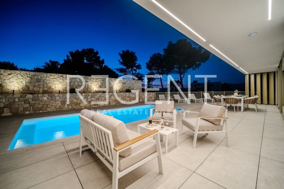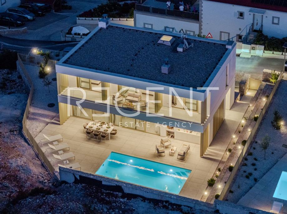 Predstavljamo vam predivnu vilu smještenu u Sutivanu na otoku Braču. Ova vila prostire se na parceli od 576 m². S ukupno 274 m², ova luksuzna rezidencija nudi prekrasan pogled na more i prirodu.Sastoji se od prizemlja, prvog kata te outdoor space-a. Prizemlje vile čini otvoreni prostor koji objedinjuje dnevni boravak, blagovaonicu i modernu kuhinju opremljenu najnovijom tehnologijom. Velike staklene površine osiguravaju obilje prirodnog svjetla, a izravni pristup terasi od 100 m² s privatnim bazenom i roštiljom čini ju idealnim mjestom za opuštanje.Na prvom katu, tri spavaće sobe svaka s vlastitom kupaonicom i terasom pružaju ekskluzivan pogled na more i jamče potpunu privatnost. Položaj vile je pažljivo osmišljen zbog vjetra i sunčeve svjetlosti čime se osiguravaju optimalni uvjeti života s naglaskom na zaštiti od nepovoljnih vremenskih uvjeta i maksimalnom korištenju prirodnog svjetla.Ova vila se ističe vrhunskim materijalima i tehnologijom, uključujući trostruko zastakljene prozore i vrata za poboljšanu zvučnu izolaciju i energetsku učinkovitost.Dodatne značajke uključuju pripremu za punjač električnih vozila, kamin, električne rolete i vanjsko osvjetljenje. Kupaonice su opremljene električnim podnim grijanjem za dodatni komfor. Kvalitetne keramičke pločice od Imola i bazenski mozaik od Appiania naglašavaju pažnju posvećenu detaljima u svakom kutku.S posebnim prostorima za opremu bazena, skladištenje, vanjskom kuhinjom i roštiljem te tušem na terasi, ova vila pruža praktičnost i uživanje u životu na otvorenom. Mogućnost ugradnje protustrujnog sustava u bazen pruža dodatnu dodatnu notu luksuza za uživanje u rekreaciji.Vila je udaljena samo 8 km od trajektne luke u Supetru i 2 km od centra Sutivana. Idealna je za obitelji koje teže mirnom i luksuznom životu uz more, poslovne ljude u potrazi za ekskluzivnim odmorom ili investitore zainteresirane za visokokvalitetnu nekretninu na atraktivnoj lokaciji.Za dodatne informacije i razgledavanje ove nekretnine kontaktirajte nas već danas!Za više informacija, kontaktirajte našeg agenta na brojeve telefona: