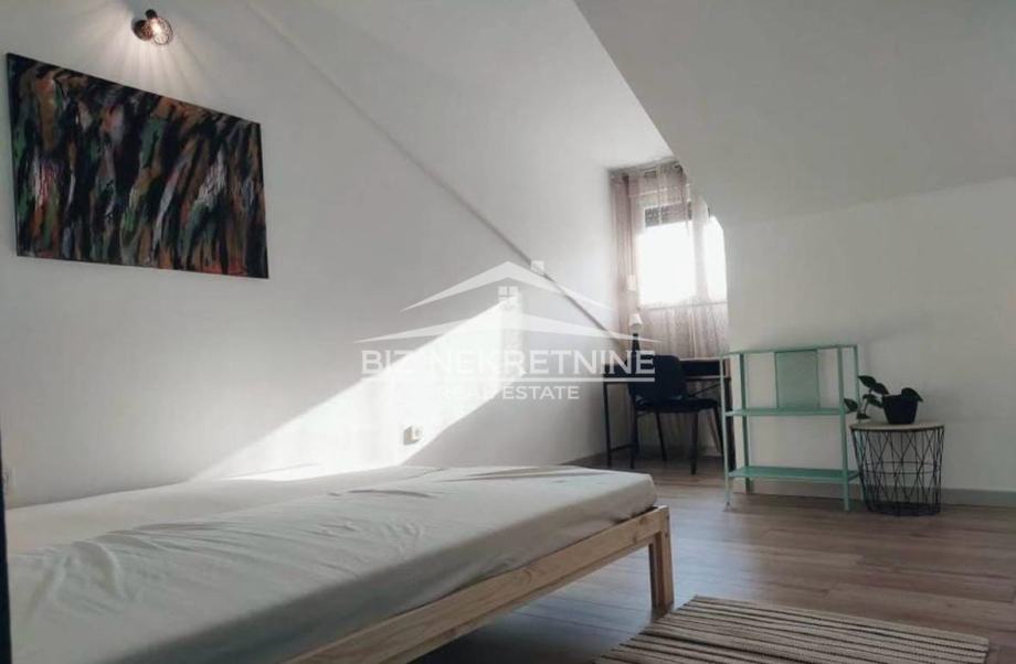 Stan se nalazi u visokom potkrovlju ali su bočni zidovi lijepe visine.