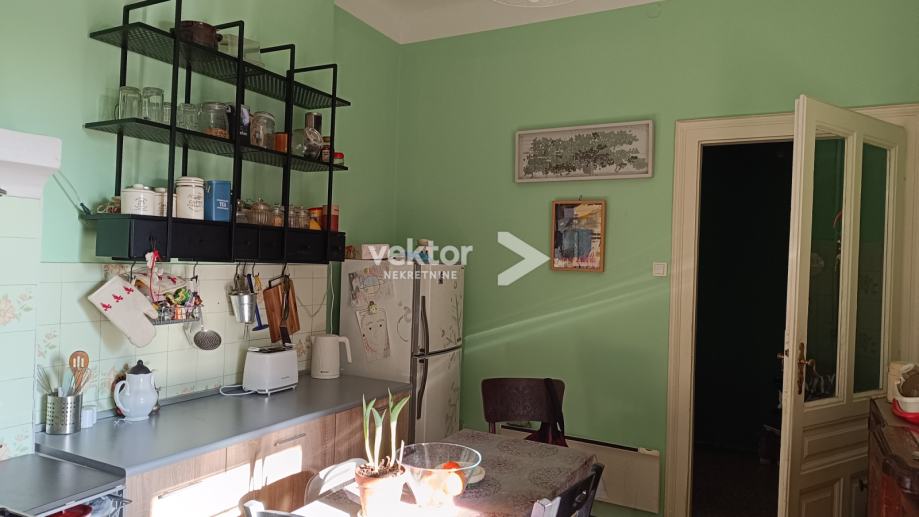 Zgrada je uredna i održavana, s obnovljenim krovom, a sam stan odiše posebnim, umjetničkim štihem i toplinom doma. Sastoji se od kuhinje, manje sobe koja može poslužiti kao radna soba ili se po želji može pripojiti kuhinji, spavaće sobe, dnevnog boravka, kupaonice i ostave.