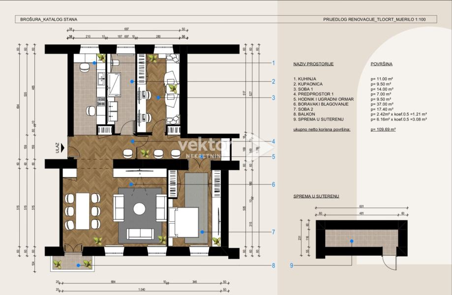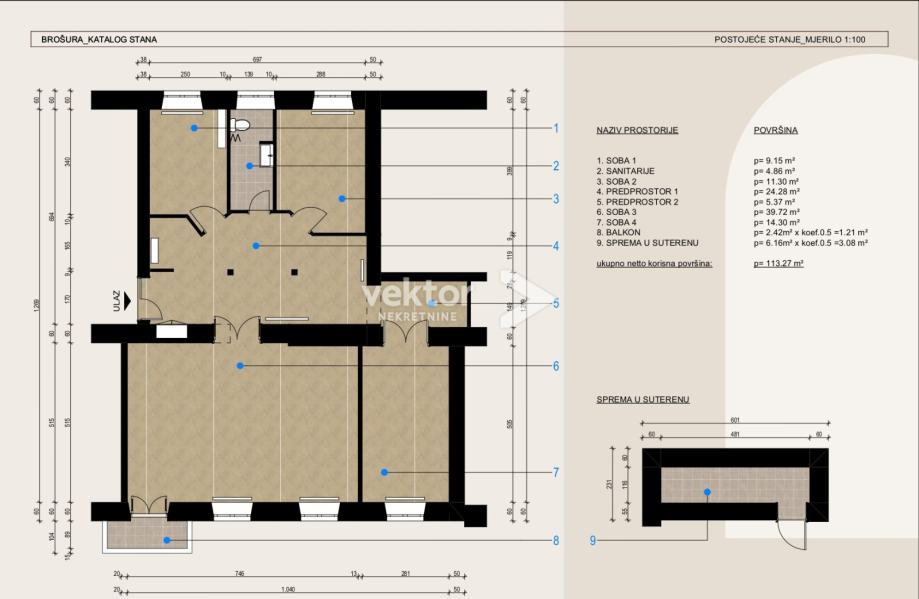 Status: trenutno u funkciji poslovnog prostora, ali se uz minimalne preinake može prenamijeniti u stambeni prostor