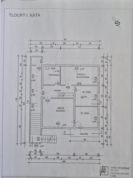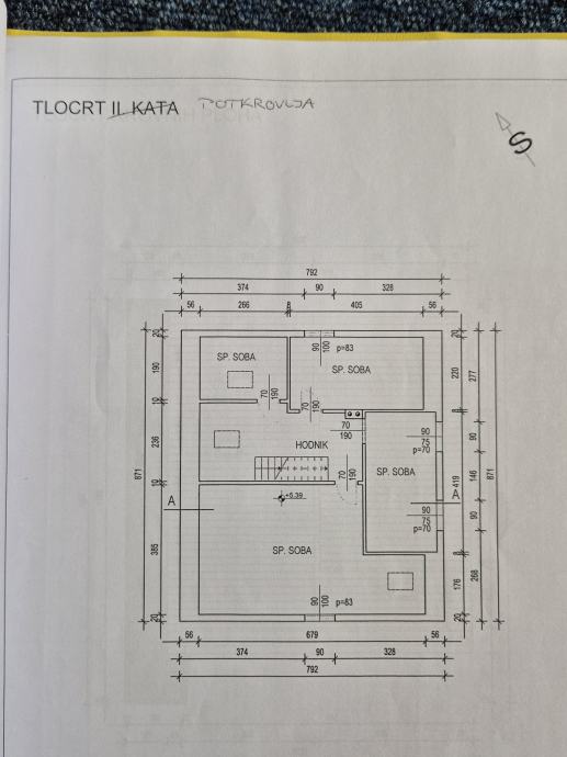 Veličina i raspored prostorija vidljivi iz tlocrta.