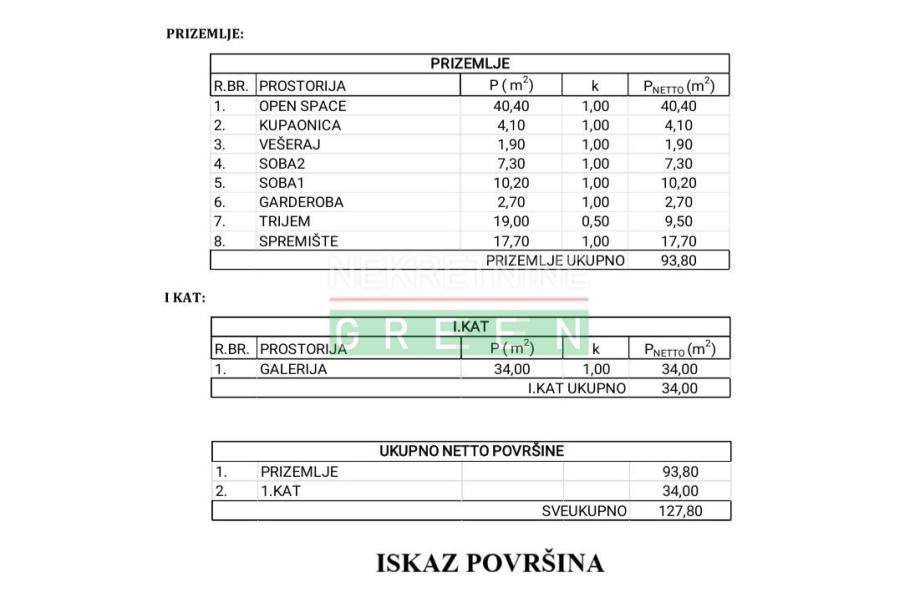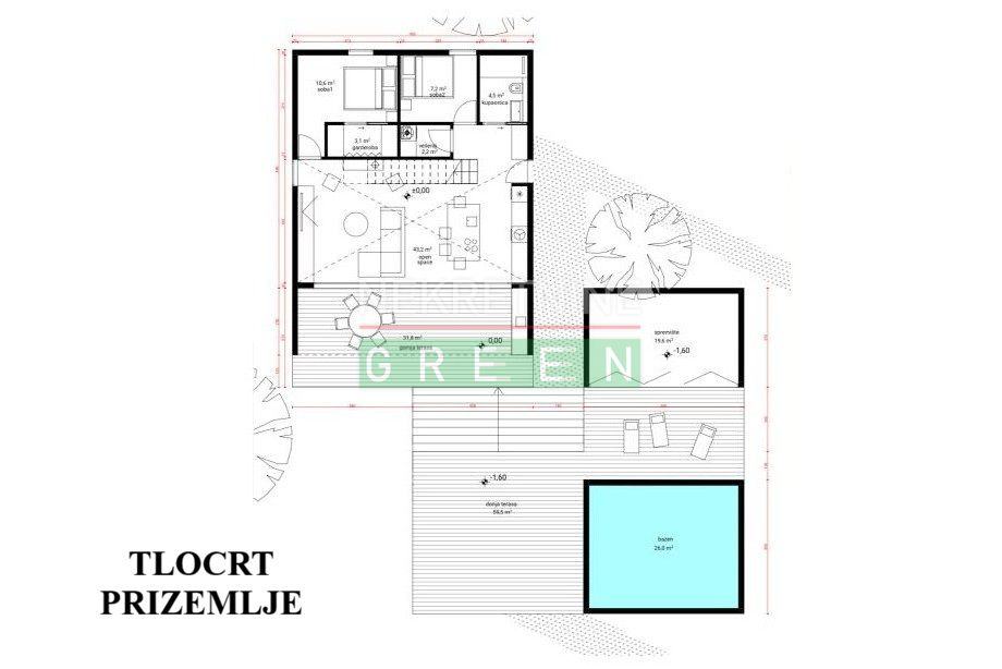 Prizemlje (neto površina zatvorenog dijela 66,6 m2):