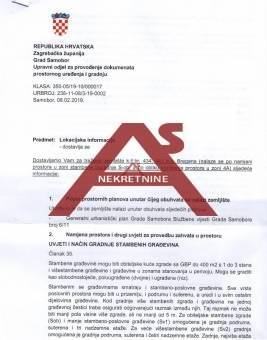 Bregana, građevinsko zemljište 1526 m2. Zemljište nadomak table Bregana, preko puta benzinske pumpe. Udaljeno je od centra cca 300 m, blizina škole, vrtića, pošte, dućana i ostalih sadržaja. Po lokacijskoj informaciji (koja je ishodovana od Upravnog odjela za prostorno uređenje i gradnju grada Samobora) nalaze se u zoni S-ob, stambena namjena - obiteljske stambene zgrade. Mogućnost gradnje objekata do 400 BRP-a. Mogućnost gradnje podrum, prizemlje, kat i uvučeni kat izgradivosti tlocrtno 70 % od kata ispod. U prizemlju zgrade može biti i stambeni prostor. Preko gradilišta prolazi kanalizacija, rasvjetni stupovi i blizina vode. Parcela ima ulaz sa glavne ceste. Vlasnički list uredan, tereta nema. Info na mob. 091 361 5081