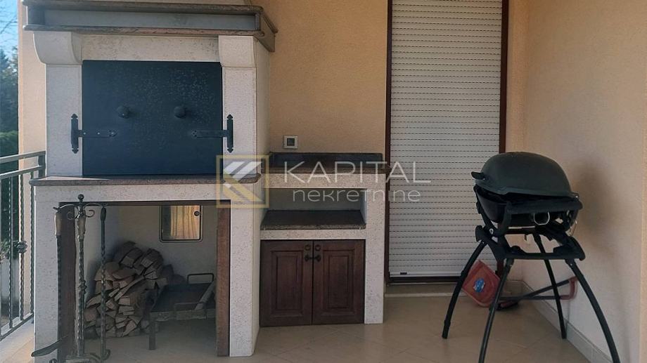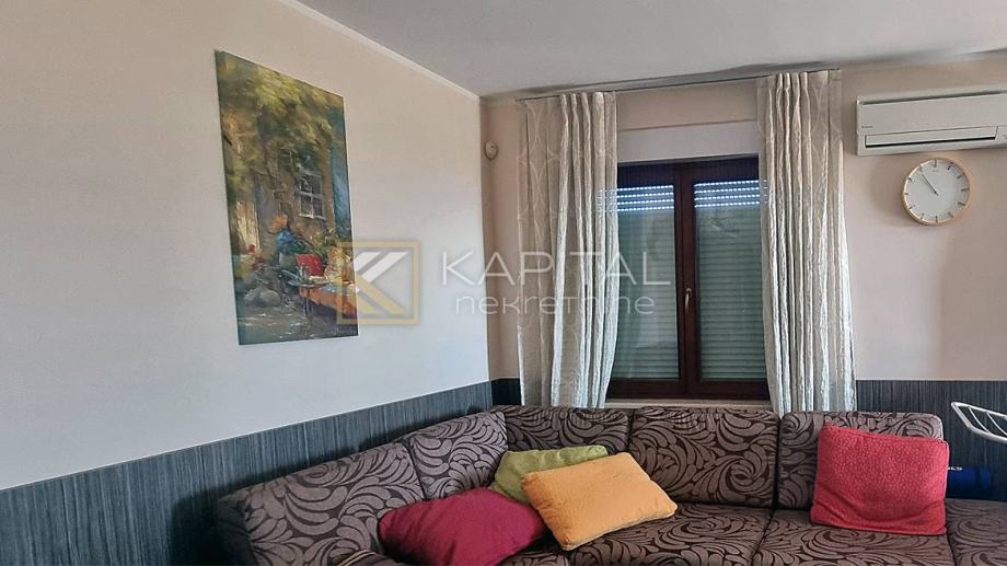 U manjoj zgradi (3 stana ) nalazi se ovaj konforni stan. Tri sobe, divije kupaonice, dnevni dio s kuhinjom i prekrasna velika terasa sa fantastičnim pogledom na more. Prodaju se kompletno namješteni i opremljeni. Velik prednost ovog stana je zidani kamin na natkrivenoj terasi sa velikim stolom. Potkrovlje ima tlocrtno 90 m2i dobro je iskoristivo (s koeficijntima nešto više od 30 m2) može biti radni dio i veliko spremište kao i spavaonica). Za sve informacije nazovite 098/257-020