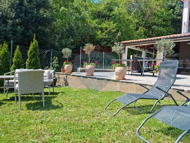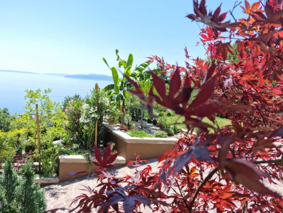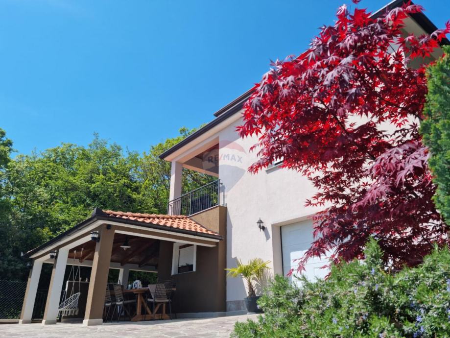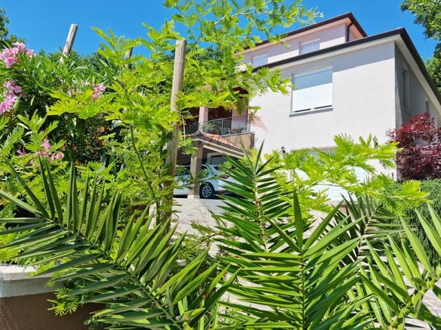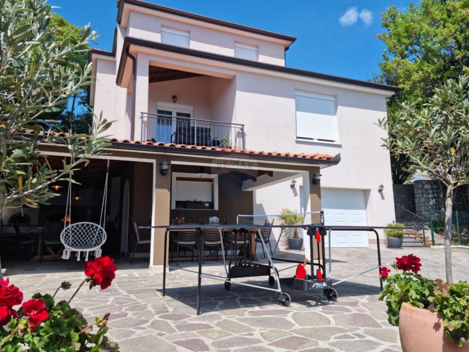 Kuća je građena od vrhunskih materijala kao što su demit termo fasada, krov je prekriven glinenim crijepom, na terasama su kovane ograde, rolete na elektro podizanje, garaža sa automatskim vratima. Centralno grijanje na pelete (Bosch komb. peć). Ova lijepa kuća nalazi se na mirnoj lokaciji, okružena zelenilom i prekrasnim pogledom na cijeli Kvarnerski zaljev.