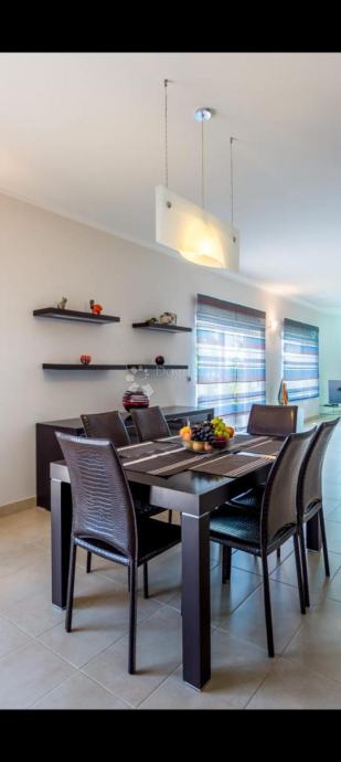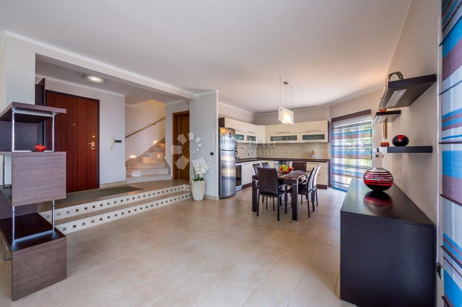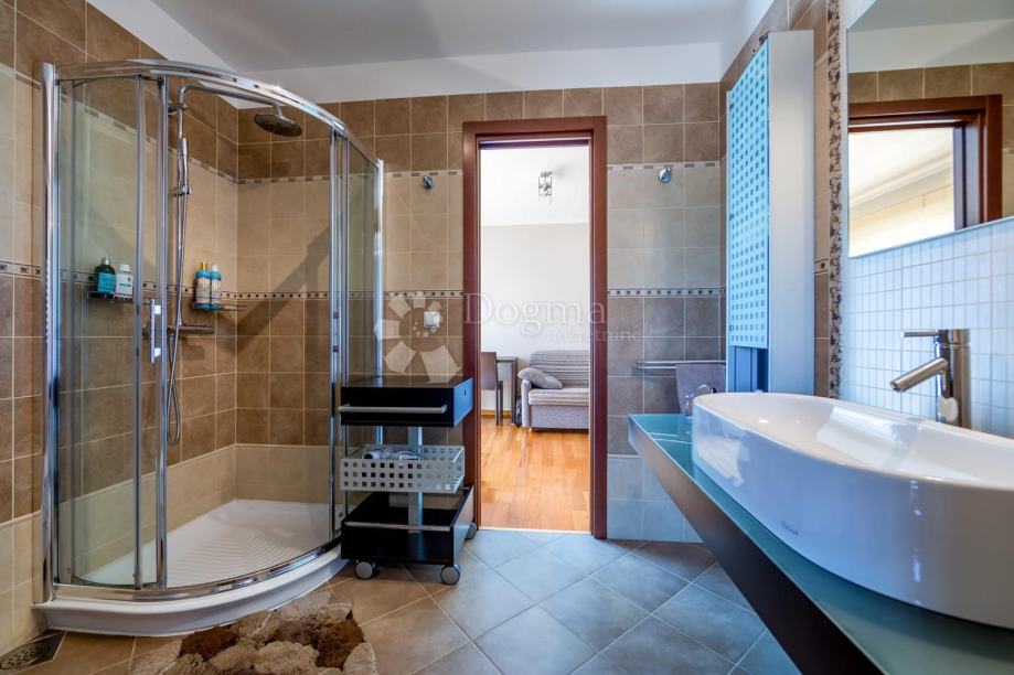 Okućnica je uredno uređena i ograđena, s pažljivo biranim zelenilom, a dodatni ugođaj pruža vanjski kamin s krušnom peći. Na raspolaganju su tri parkirna mjesta, a predviđen je i prostor za bazen ili jacuzzi, što dodatno povećava potencijal nekretnine.