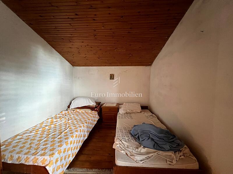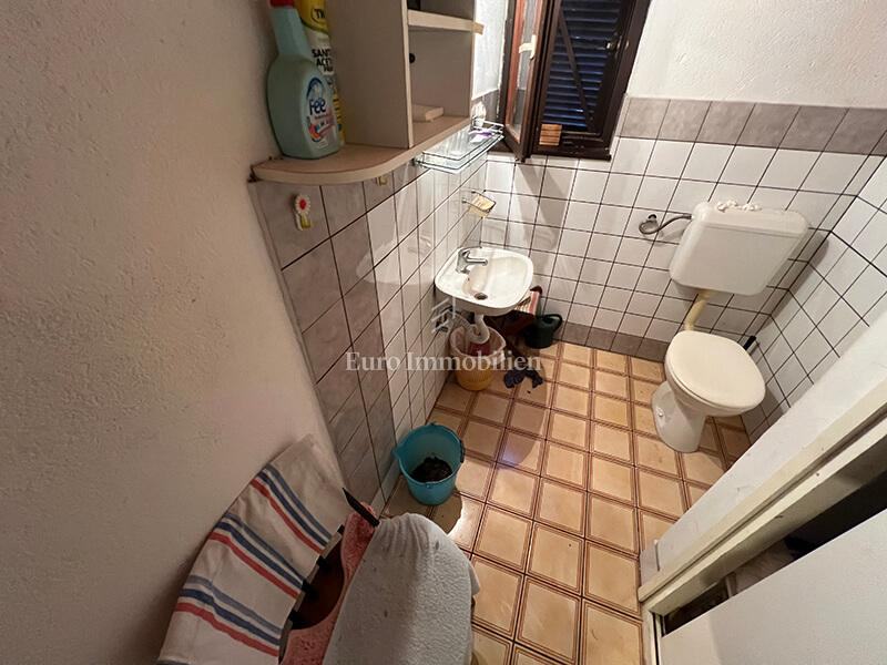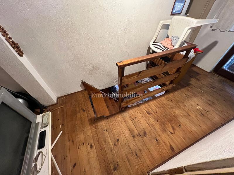 Površina kuće iznosi 140 m2, prizemlje i kat, a izgrađena je na parceli površine 371 m2. Prizemlje kuće se sastoji od predsoblja, kuhinje i dnevnog boravka, hodnika i kupatila. Na prvom katu se nalaze dvije spavaće sobe s balkonom i kupatilom. S istočne strane kuće se nalazi konoba/spremište površine 50 m2. Kuća je južno orijentirana te ima lijep pogled na more i otoke. Potrebna je kompletna renovacija.