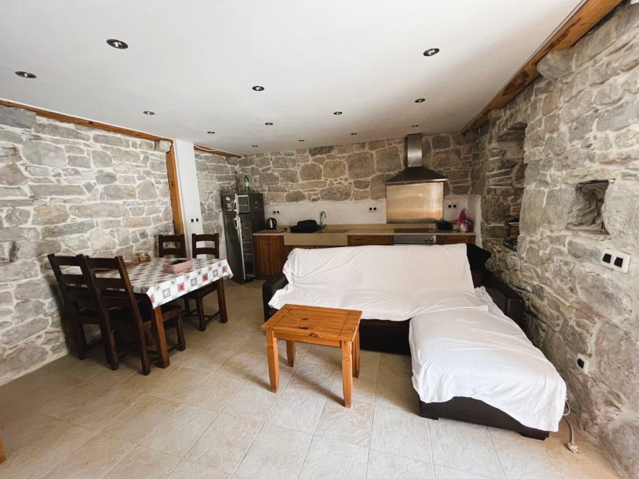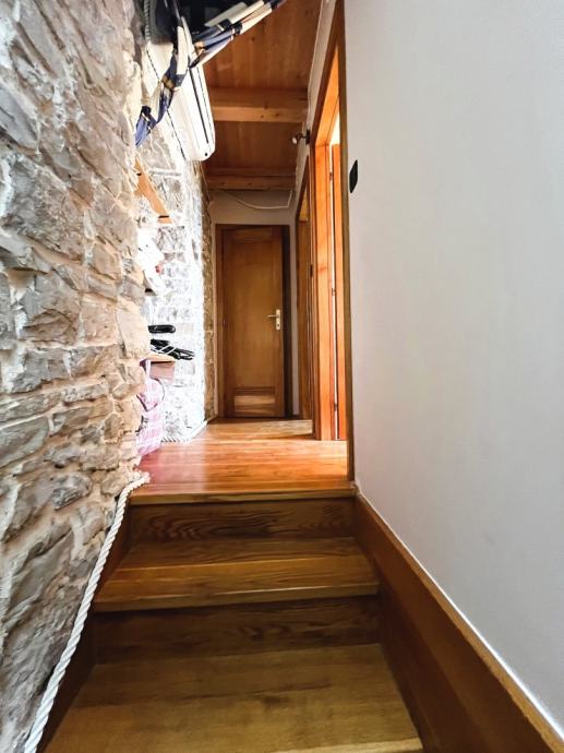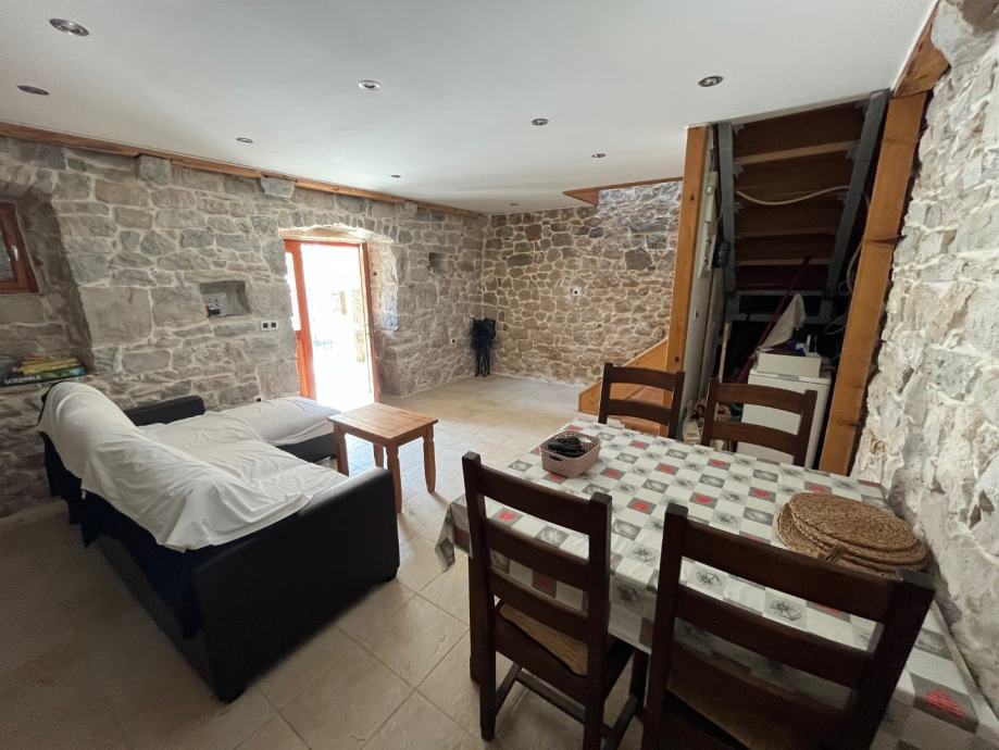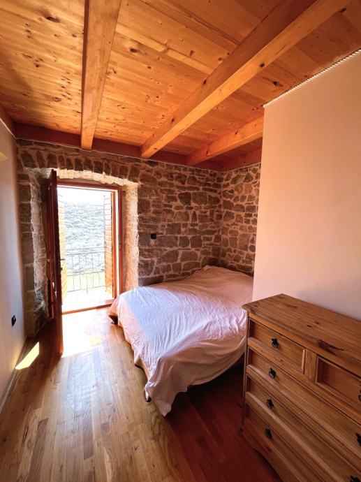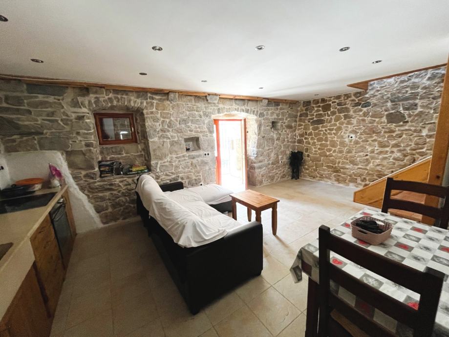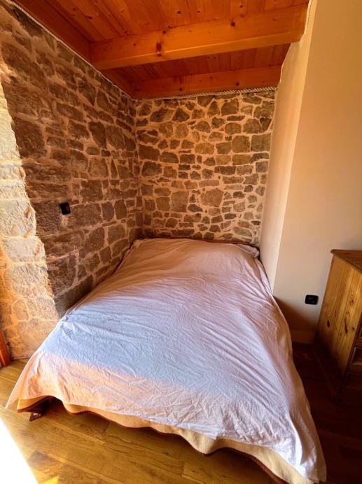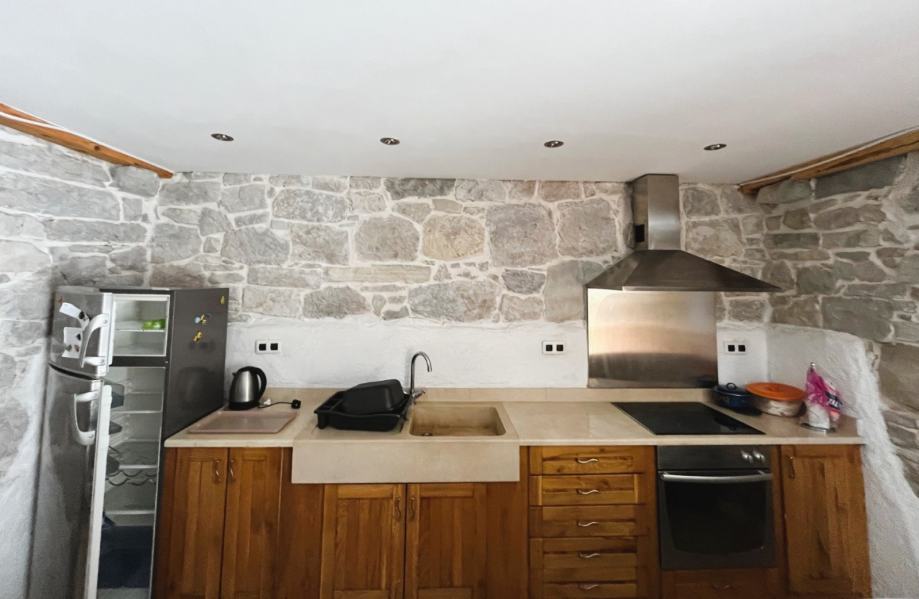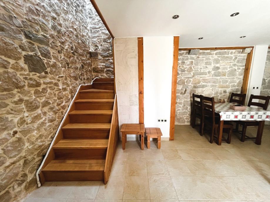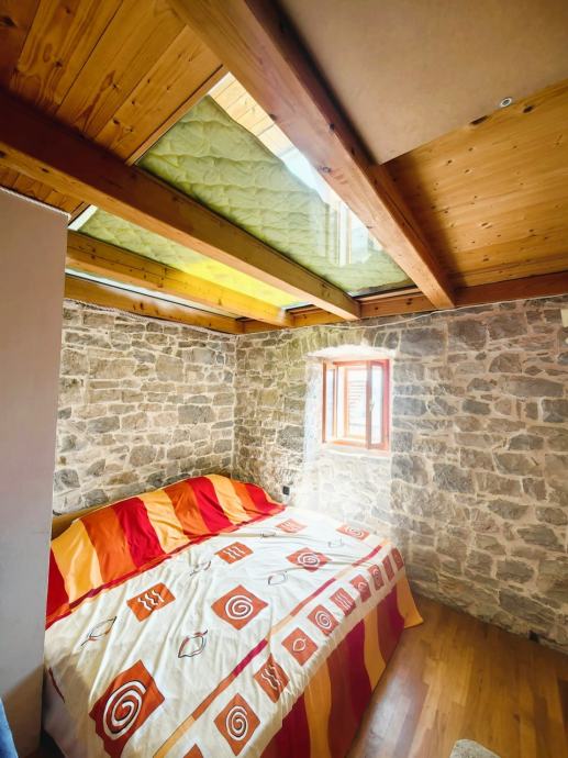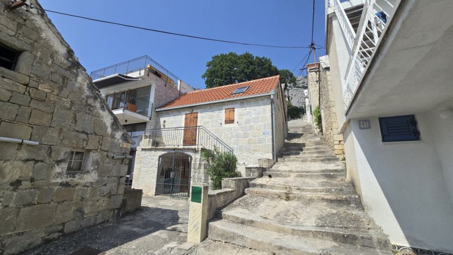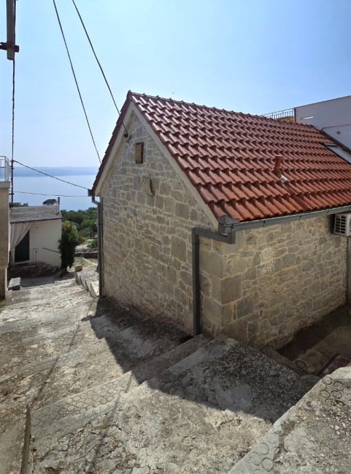 Lijepa autentična kamena kuća površine cca 70 m2, smještena u starom zaseoku u Brelima, ispod magistrale, cca 350 metara od mora i šljunčanih plaža, kvalitetno renovirana, koja se sastoji od kuhinje s blagovaonicom i dnevnim prostorom, dvije spavaće sobe i kupaonice te terase, potpuno namještena i opremljena, prilaz autom 30 metara od kuće.