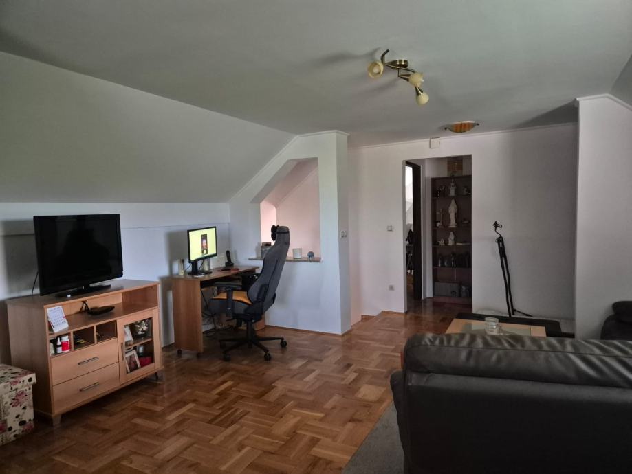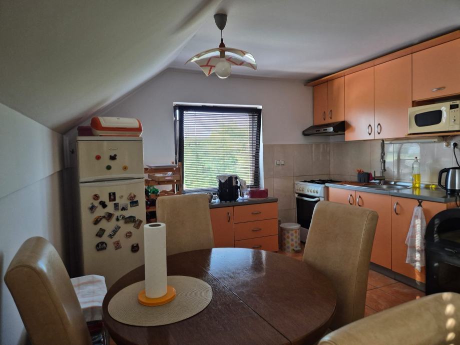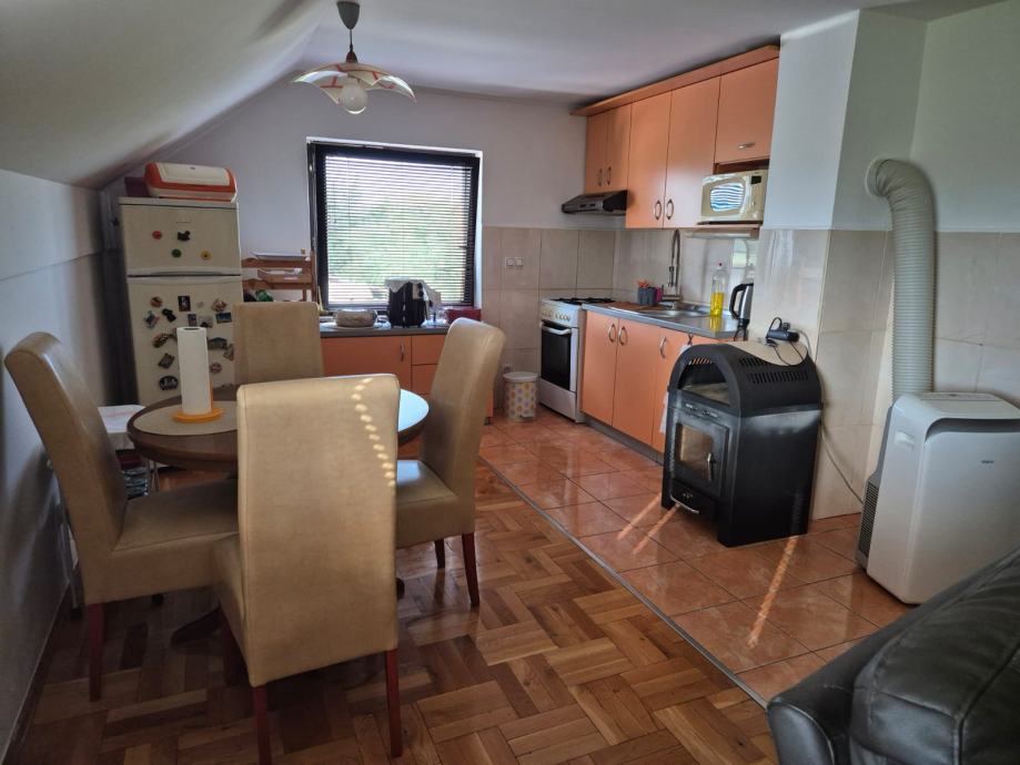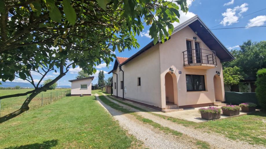 Prodaje se prekrasno imanje na 3497 m2 na kojem se nalazi kuća sa 2 stambene jedinice ( 2-sobnim stanom 59 m2 i 3-sobnim stanom 80 m2 ), pomoćnom zgradom uređenom kao garsonijera 37,66 m2 i poljoprivrednom zgradom ( nekad bio štagalj u kojem su bila 4 konja, postojeća dozvola za uzgoj kopnenih životinja ). Kuća kompletno renovirana 2007 god.: krov, sve instalacije ( struja, voda ), parketi, fasada, termofasadni stiropor... Vodovod gradski, kanalizacija septička ( plaćen priključak za kanalizaciju, potrebno iskopati cca 70 m do kuće i priključiti ).