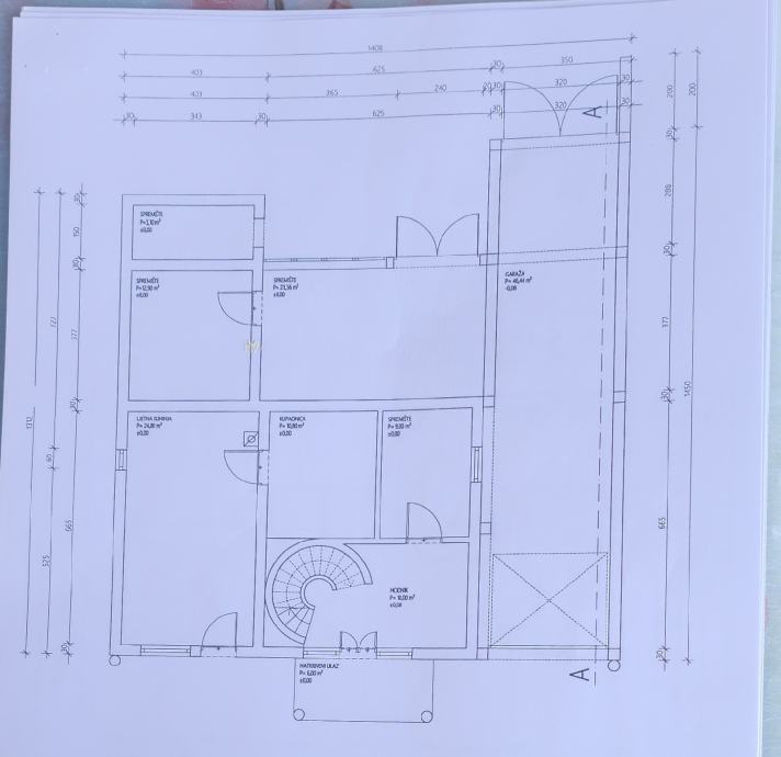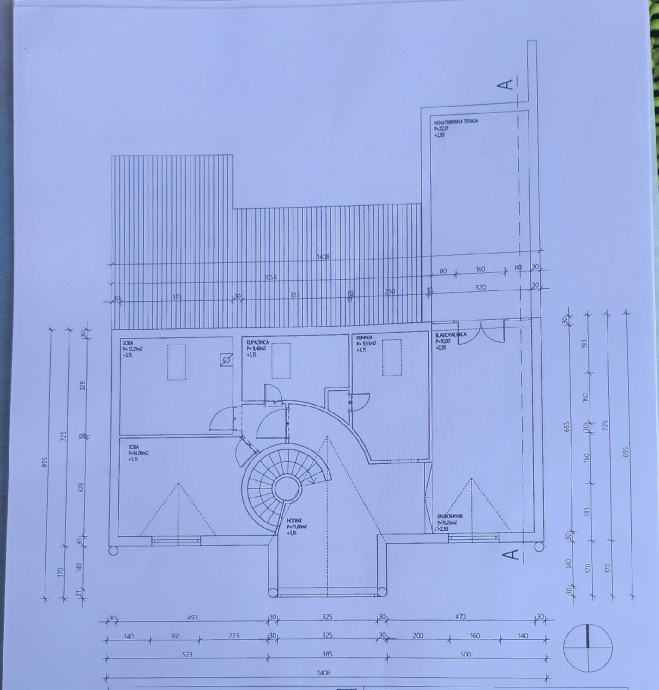 Donji stan ima 61 m2, a gornji netto površine 96m2 od ćega otpada 5,57 terasa obračunski 0,25% u naravi 22m2.