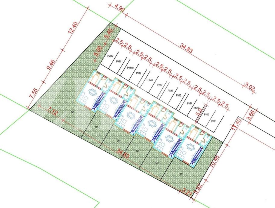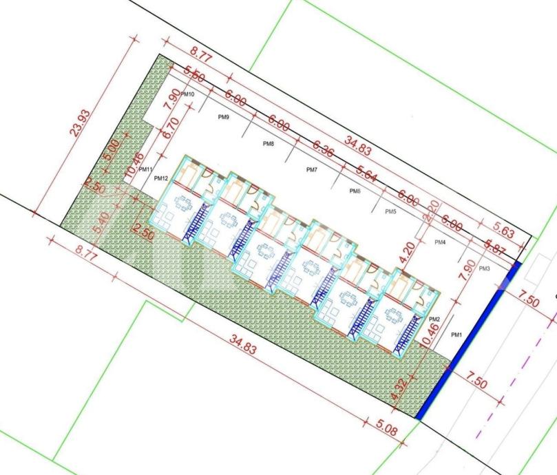 Prodaje se 12 kuća u nizu, dva objekta po 6 kuća u nizu, projekt je u fazi ishođenja građevinske dozvole, trenutno se primaju rezervacije, početak gradnje je predviđen u 9/2025g., a useljenje 9/2026g.
