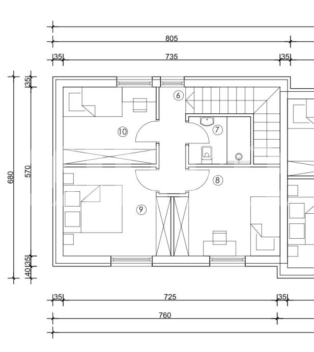 Kata: hodnik i stubište (7,65m2), soba (10,29m2), soba (10,45m2), Soba (8,19m2) i kupaonica (3,36m2), ukupne površine 39,94 m2.