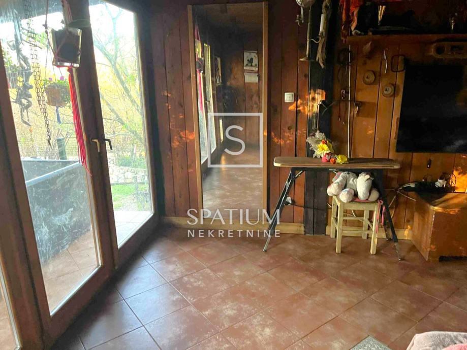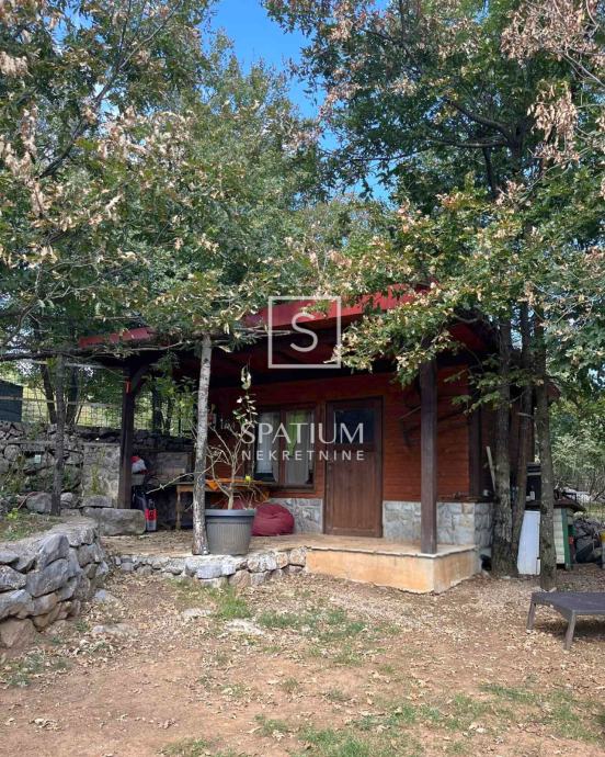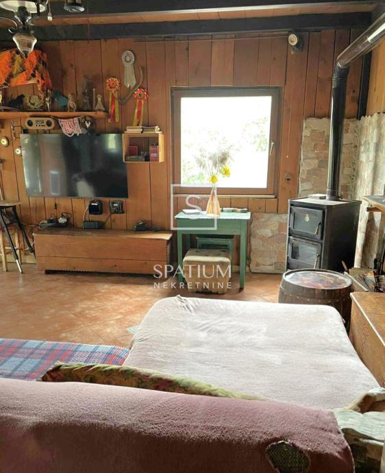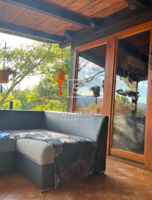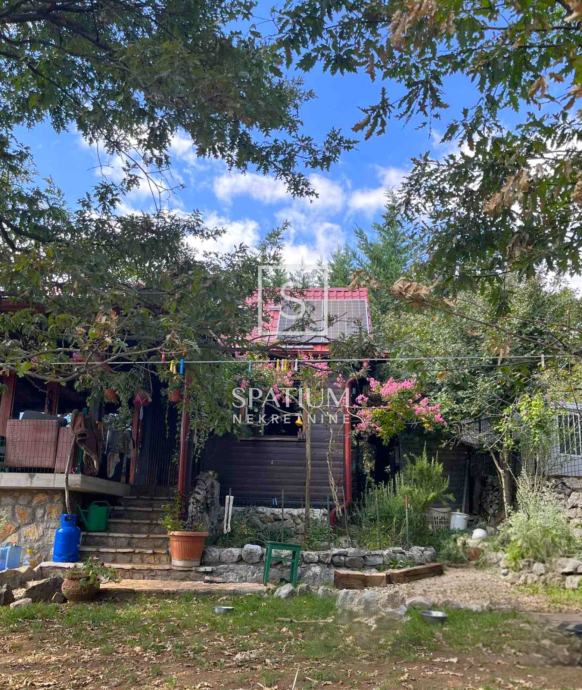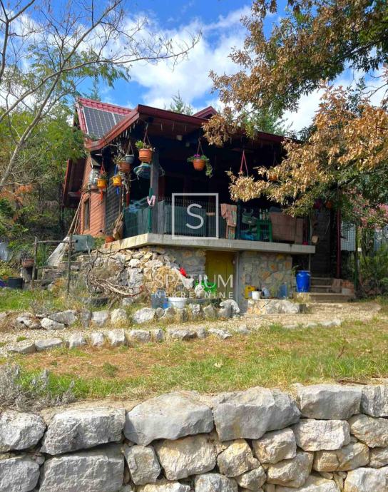 Sa terase ispred kuće pruža se pogled na okućnicu i prekrasnu, netaknutu prirodu. Na ograđenoj okućnici nalaze se kućica za goste površine 25m2, dva gospodarska objekta, alatnica i konoba.