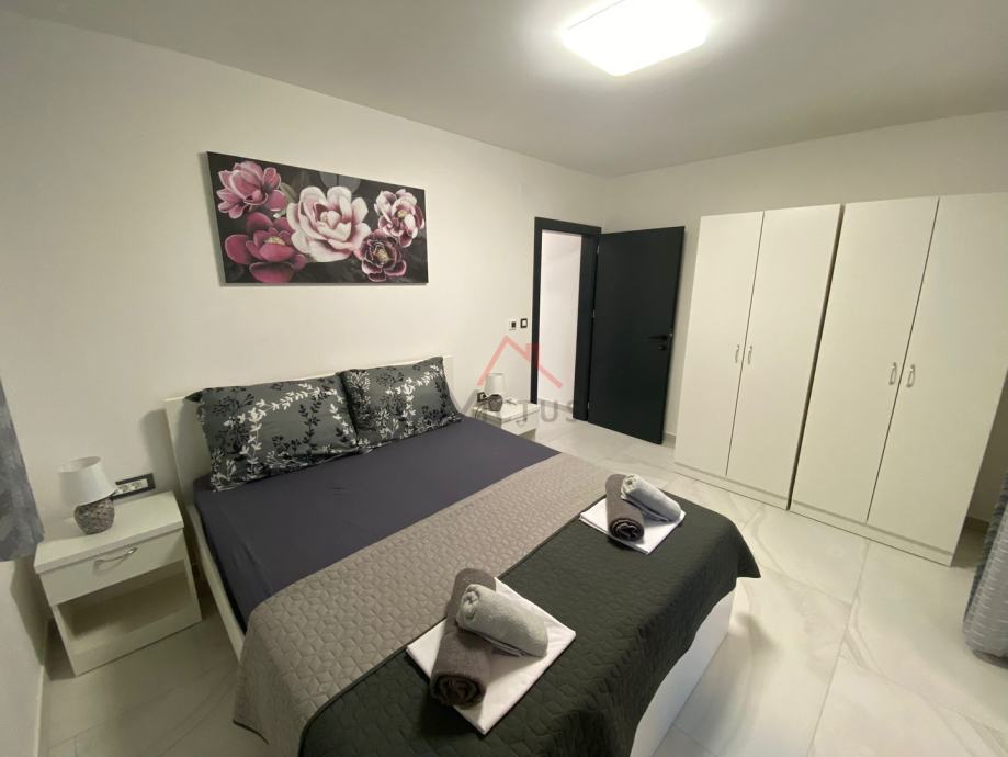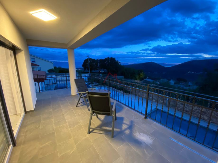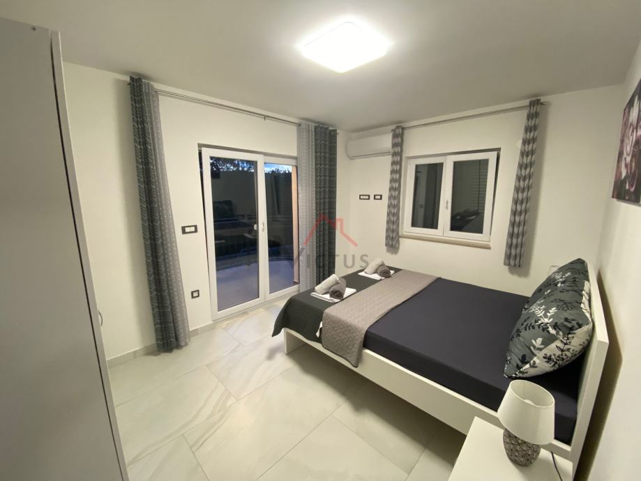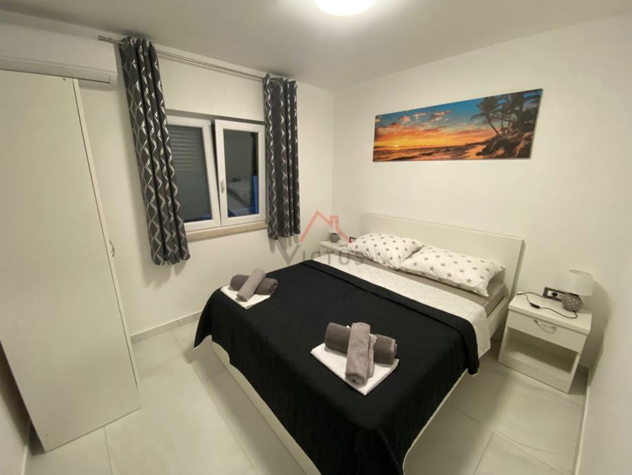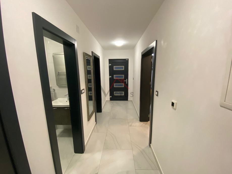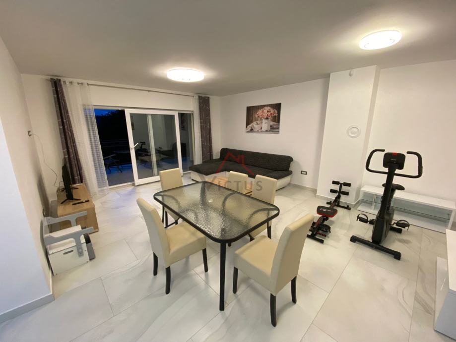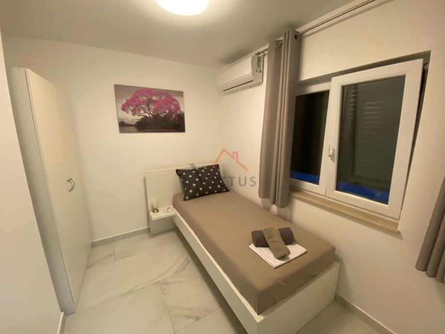 Sastoji se od hodnika, velikog dnevnog boravka s kuhinjom i blagovaonicom, tri spavaće sobe, dvije kupaonice i velike natkrivene terase s koje se pruža otvoreni pogled na more i predivni Vinodolski kraj. Stan je opremljen podnim grijanjem i klima uređajima, te električnim roletama.